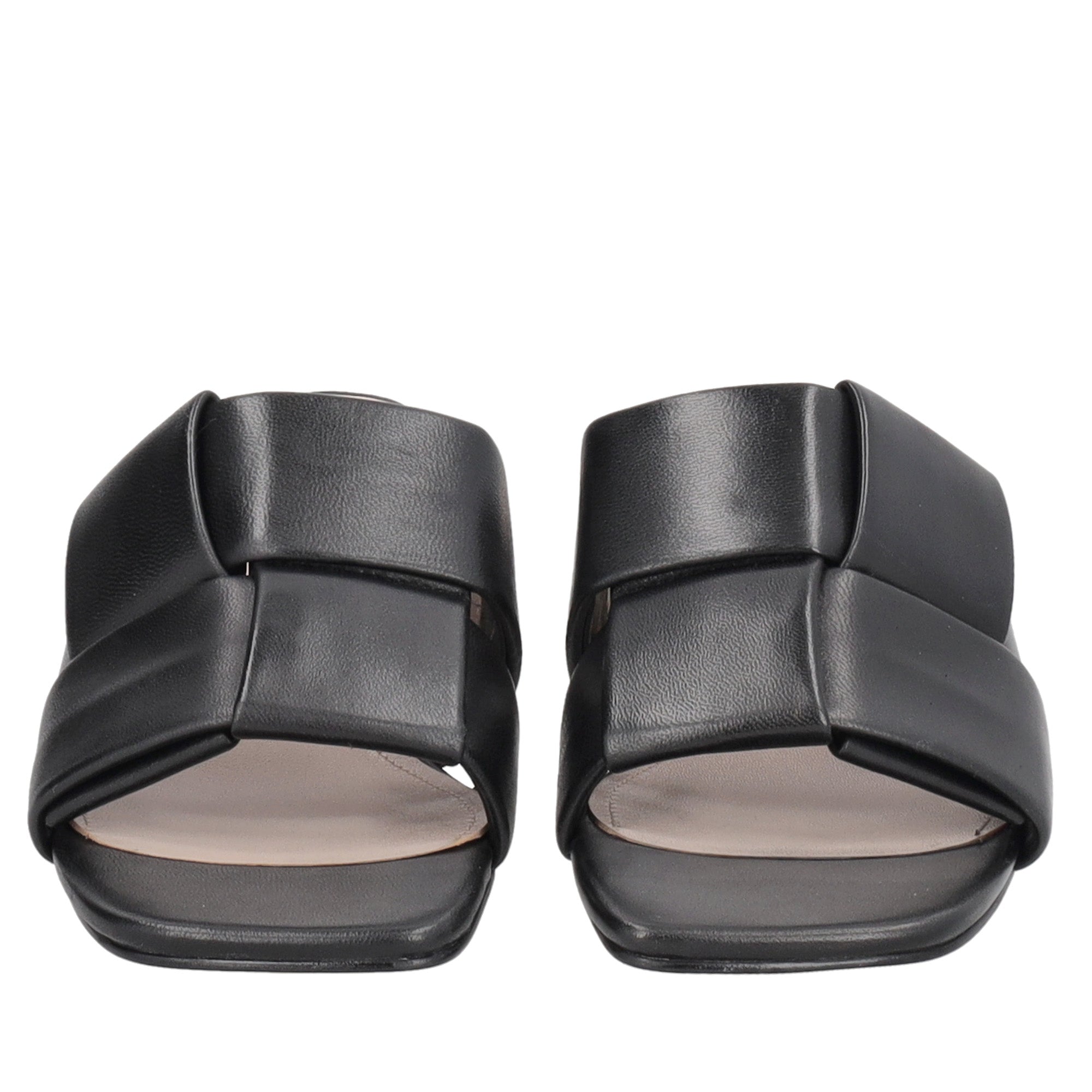 These braided heeled sandals represent the essence of minimal-chic style. Made entirely of black leather, the model stands out for its square-toe design and wide padded band with craftsmanship-inspired weaving. The solid 6 cm heel ensures stability and comfort, making the woven sandals with heels the ideal accessory with tailored suits or midi dresses: minimal in appearance, refined in every detail.