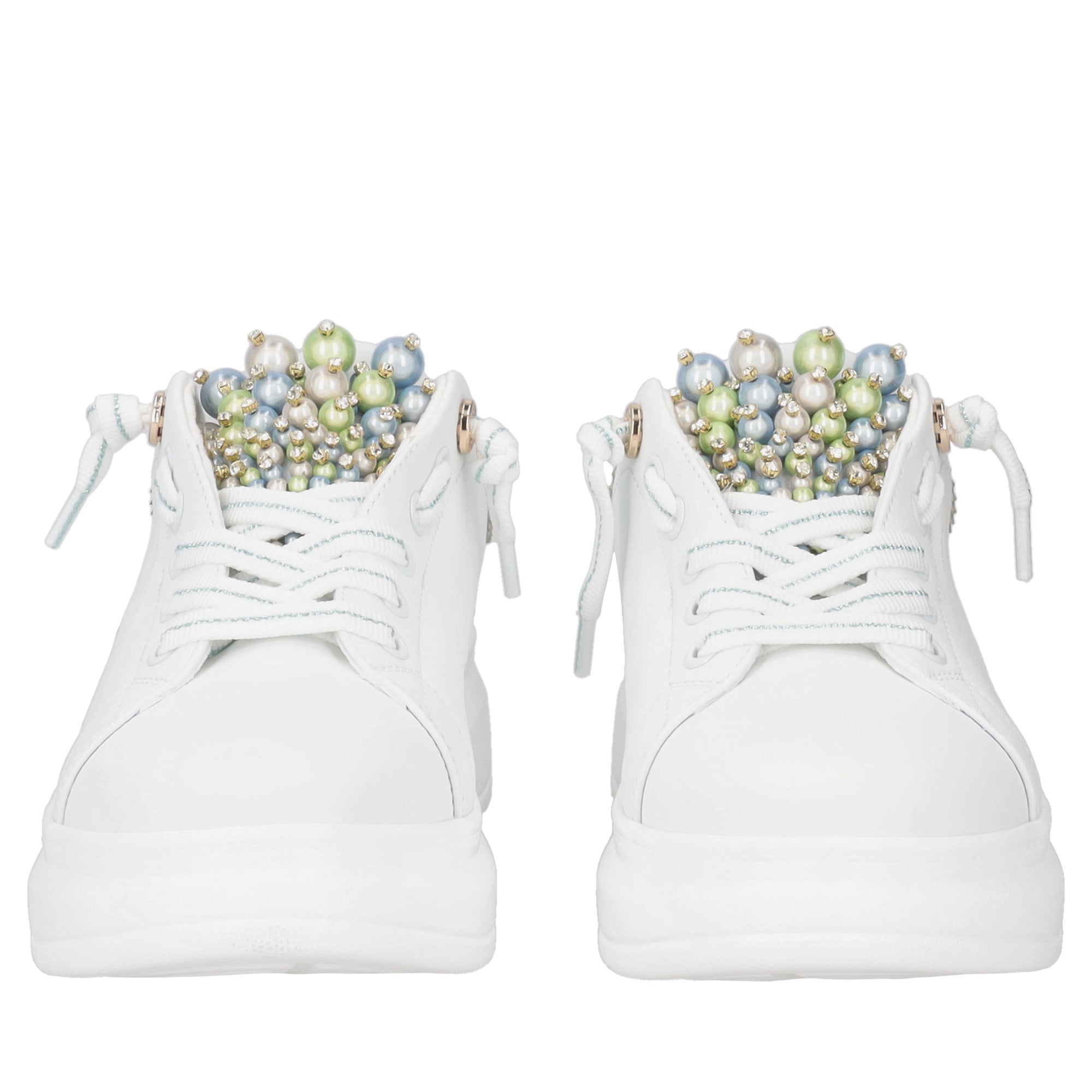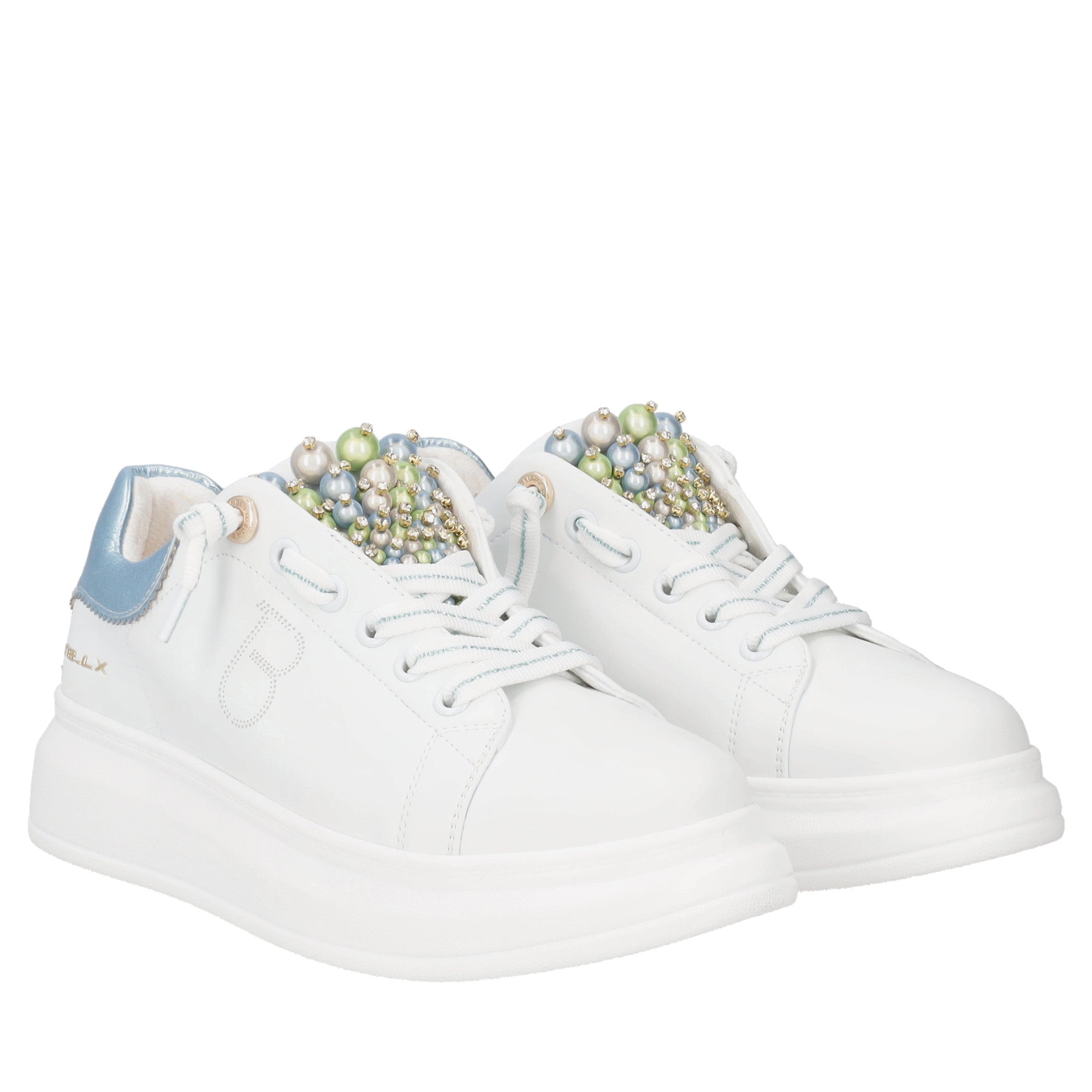 Astrid leather sneakers with white/light blue pearls