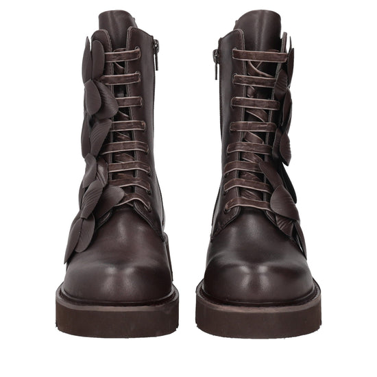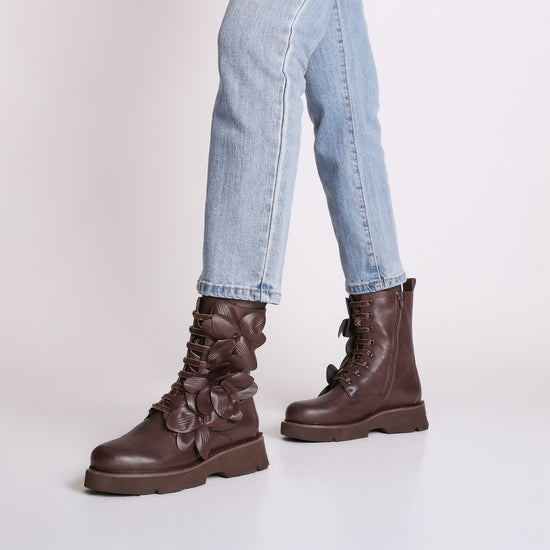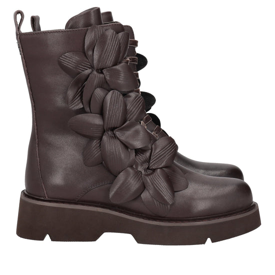 dark brown louise ankle boot with leather flowers