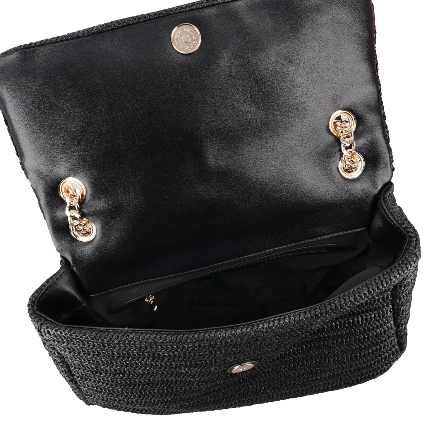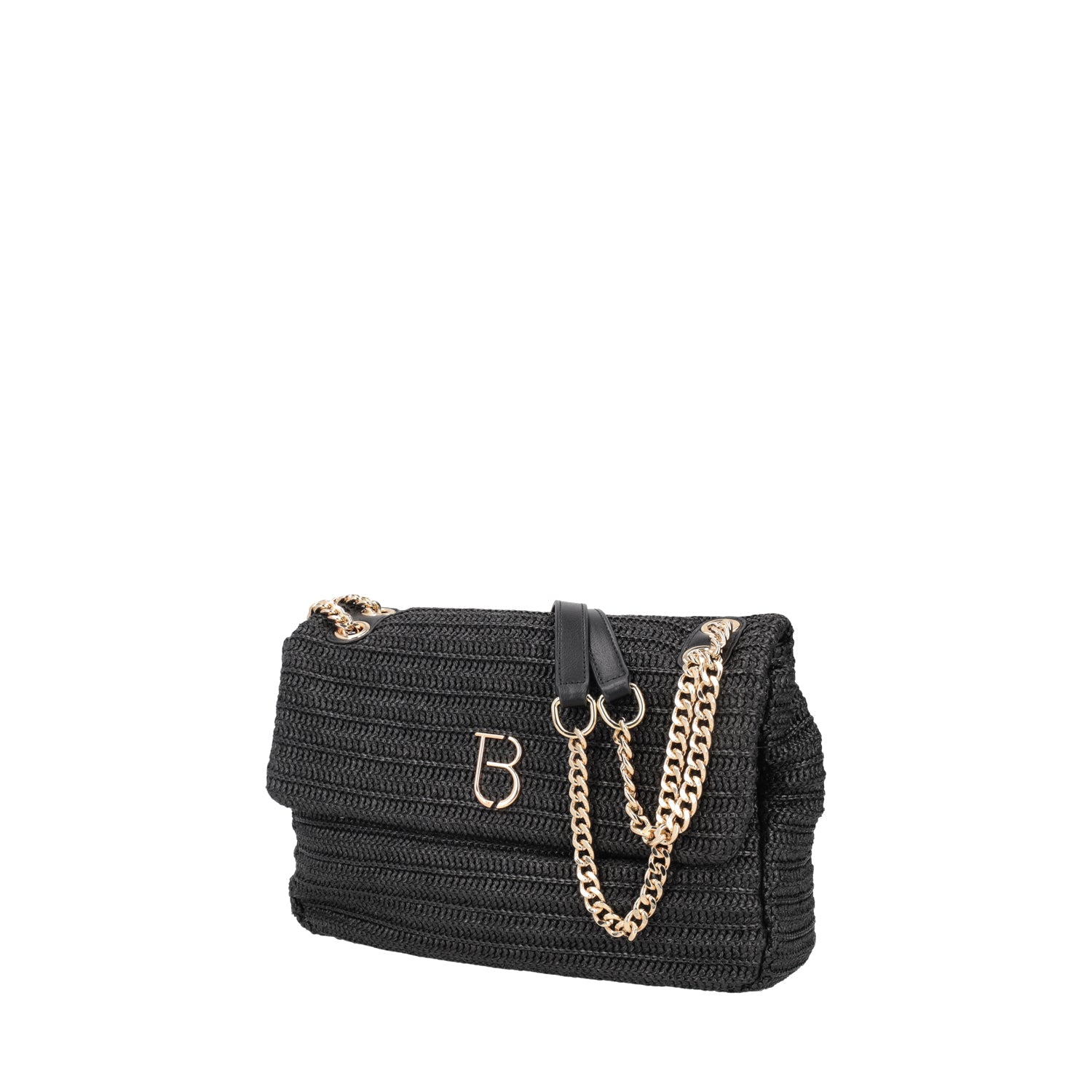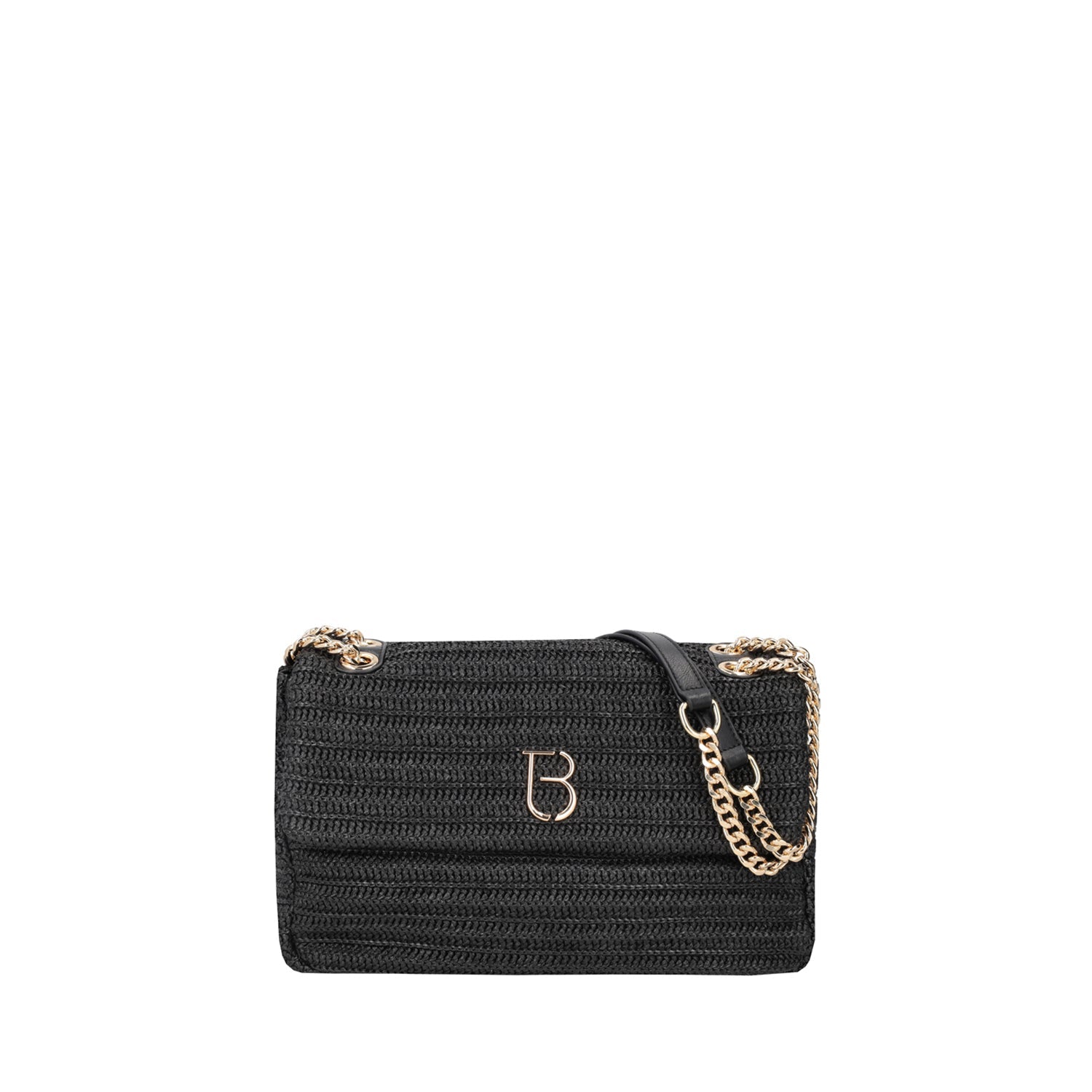 BLACK MYKONOS SHOULDER BAG WITH FLAP