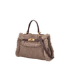 The mud-brown suede handbag from Tosca Blu’s latest collection has been embellished with a gorgeous plush teddy-fur-effect trim for a romantic aesthetic guaranteed to enhance your looks with a touch of class. It has a single spacious compartment fitted with two pockets (one left open and the other with a zip fastening) so you can always have everything you need at your fingertips. The turn-clip closure provides you with all the security you need while the removable adjustable leather strap will allow you to wear this suede handbag over one shoulder too.