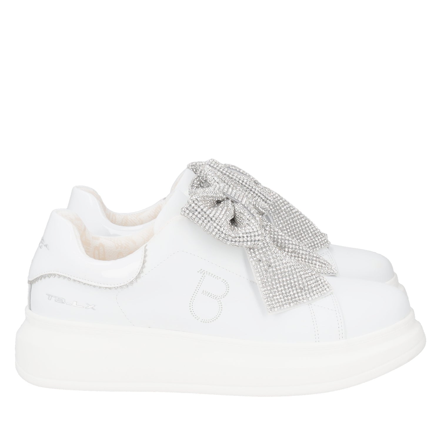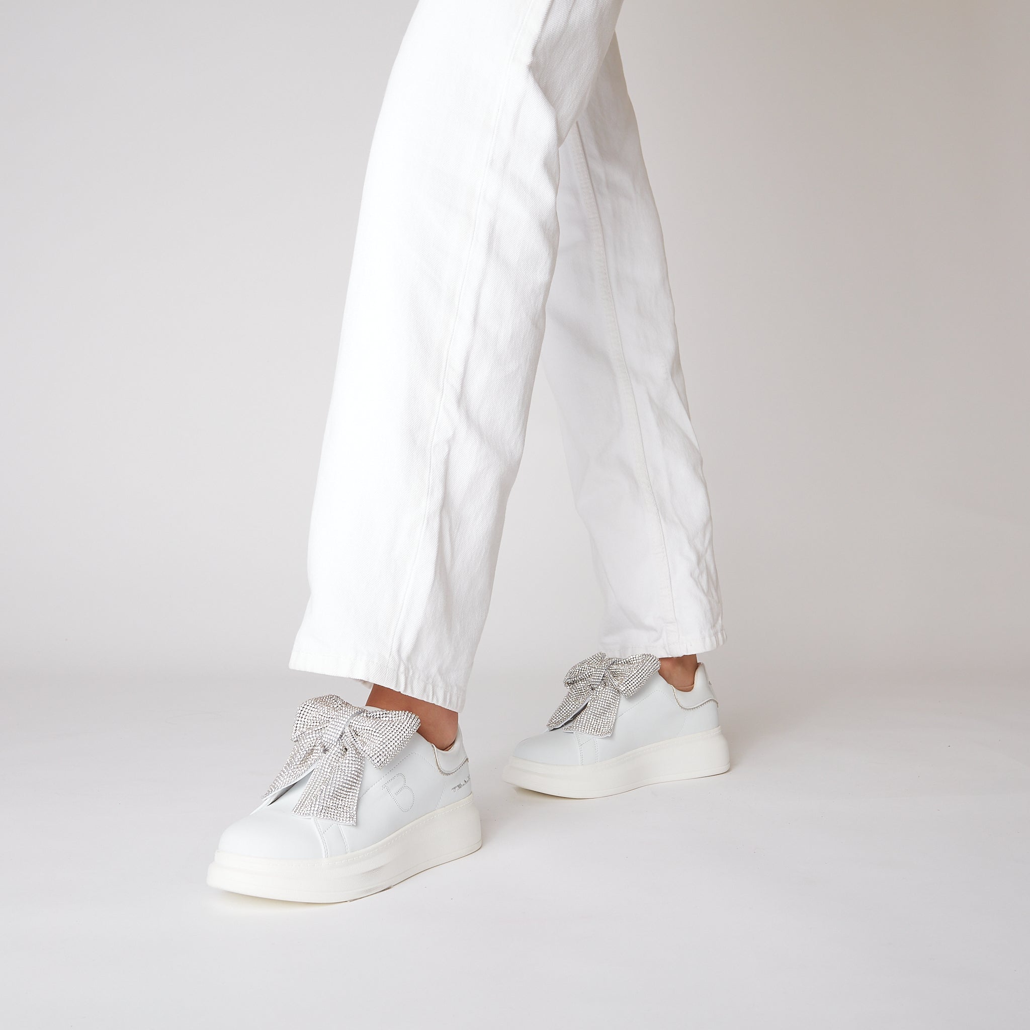 WHITE/SILVER BELLATRIX SNEAKER WITH MAXI RHINESTONE BOW