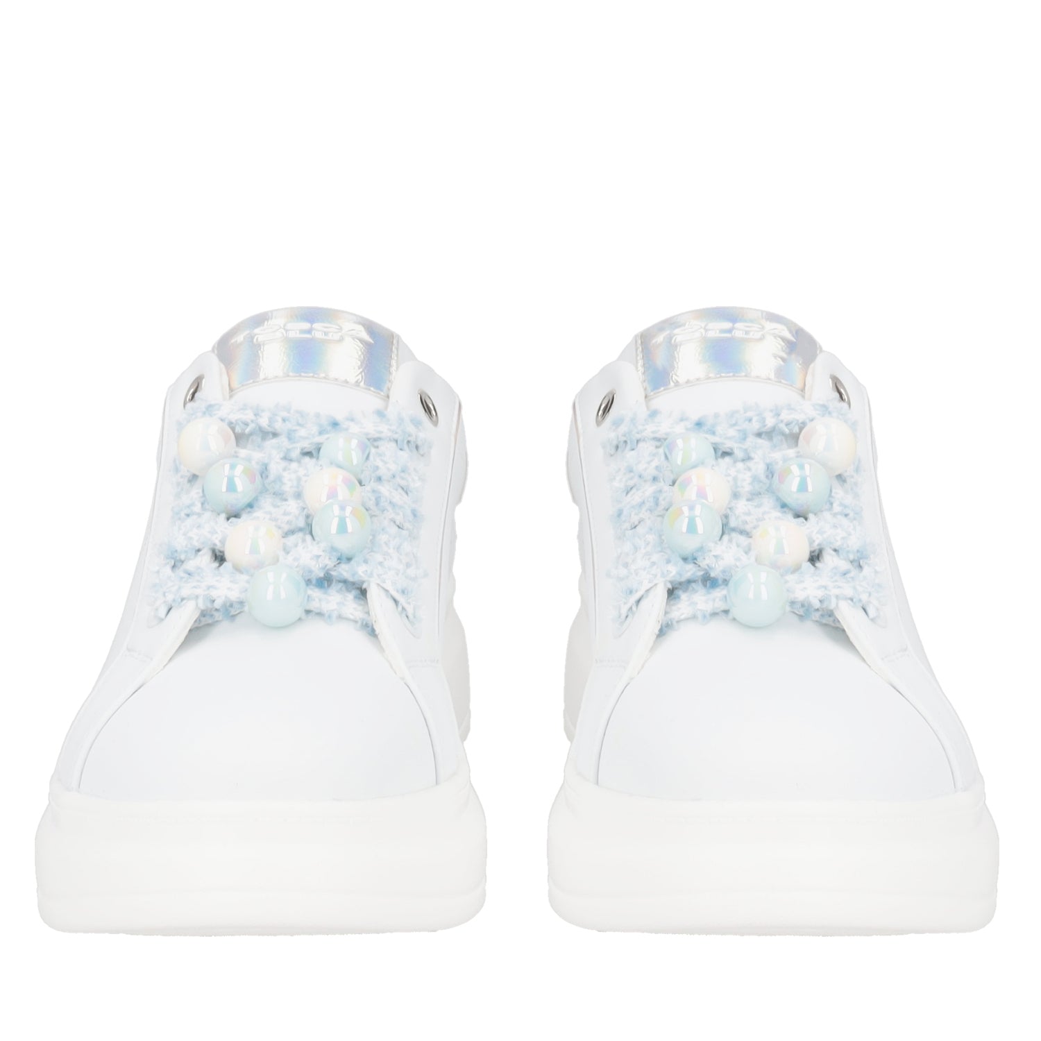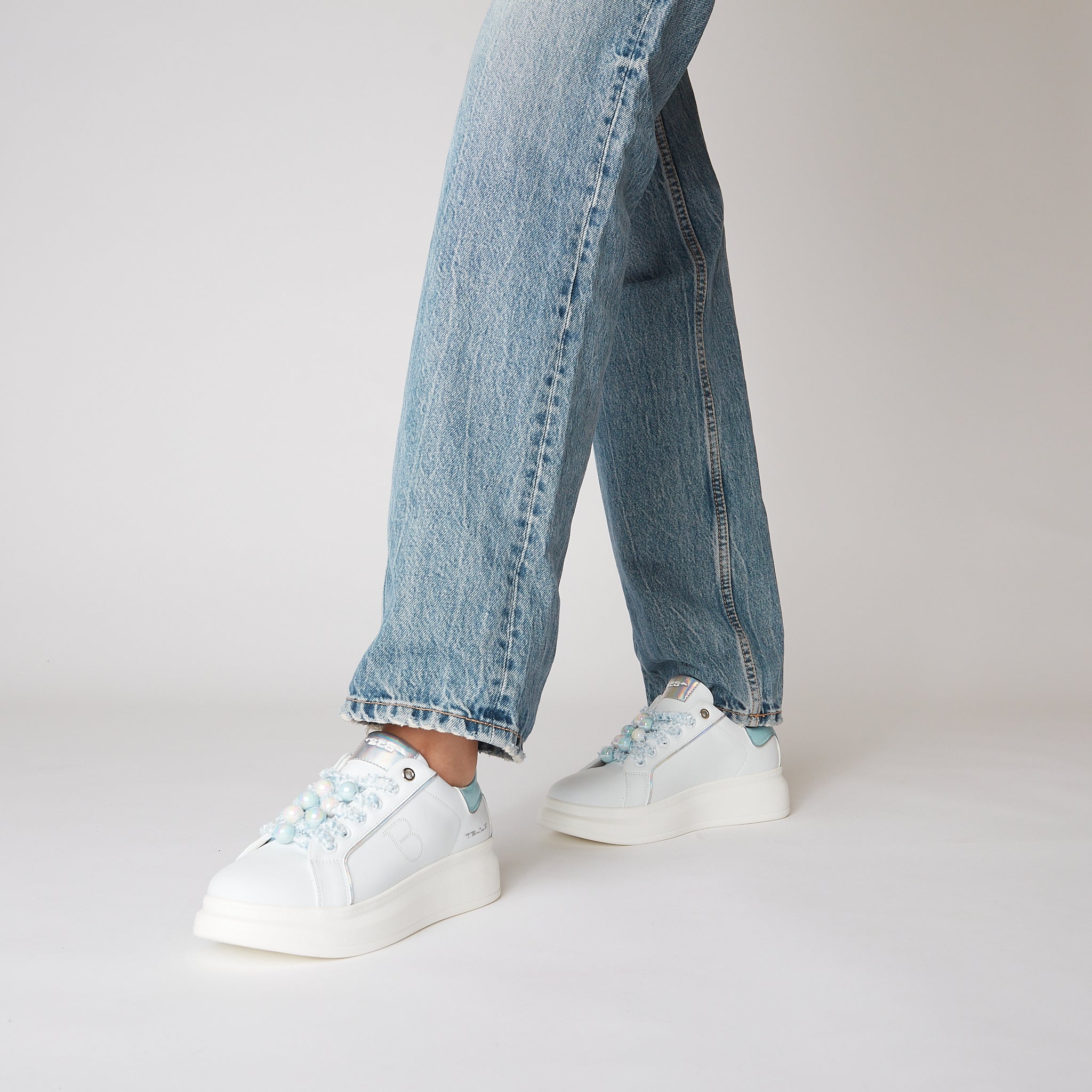 WHITE/LIGHT BLUE BELLATRIX SNEAKER WITH BOREAL EFFECT PEARLS