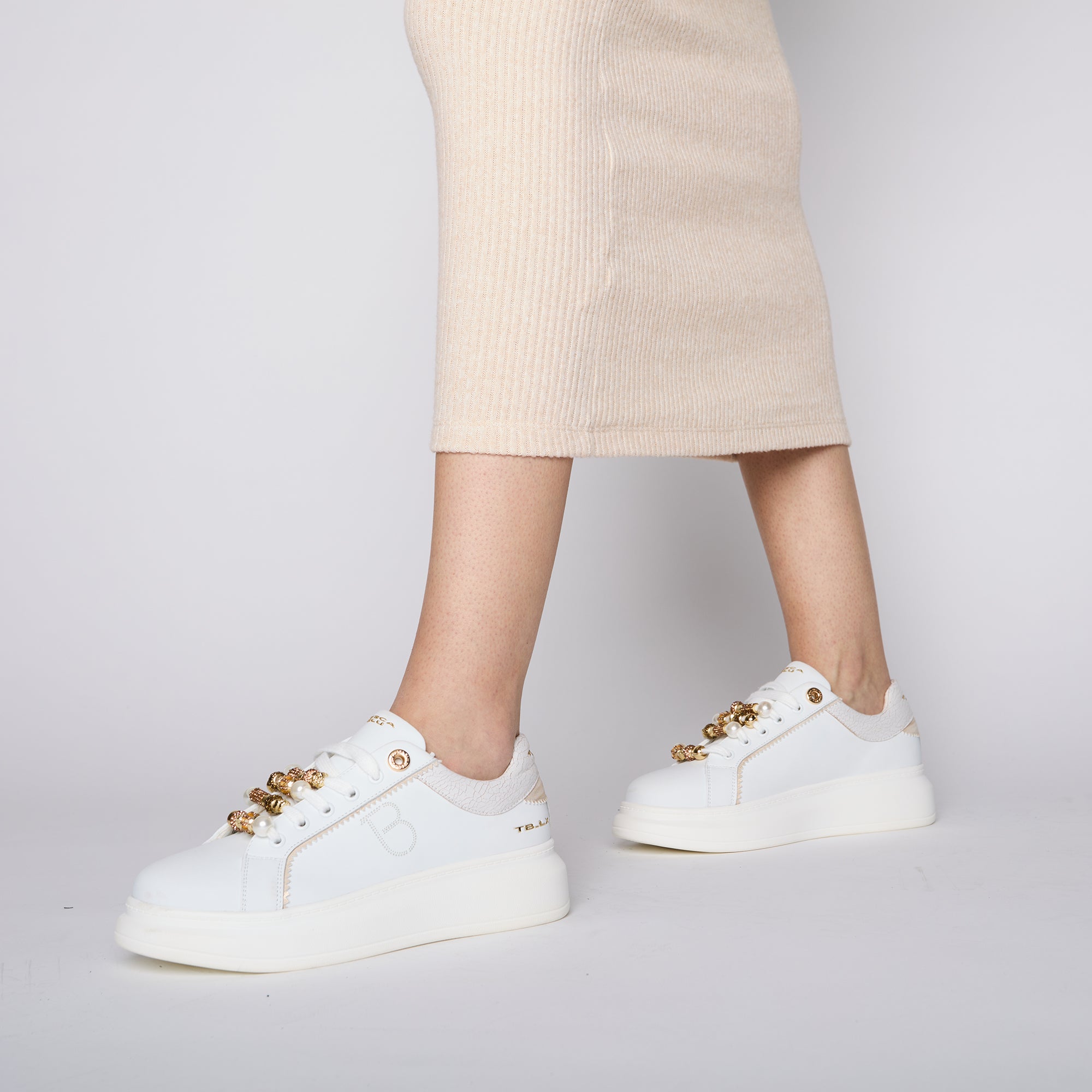 White/Beige Chic sneaker in leather with charms