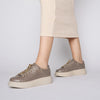 These mud-brown leather sneakers will soon become your favourite piece of footwear. They feature a padded interior and rest on a comfortable platform sole, making them the perfect way to round off your looks for the upcoming season. Tonal velvet laces run down the upper topped with gleaming bejewelled butterflies. These leather sneakers have been faultlessly finished with logo lettering on the tongue and a gold-tone detail on the heel counter.