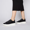 This leather sneaker from Tosca Blu with bejewelled spheres will brighten your looks with a sense of low-key elegance. Crafted from supple black leather, these shoes have been adorned with delicate bejewelled spheres on the eyelets. The sleek silhouette and versatile aesthetic make it a perfect match to your casual-chic city outfits. The leather sneaker rests on a slightly elevated sole which naturally flatters the figure.