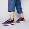 Discover the brand-new leather sneaker from Tosca Blu - a must-have for your casual-chic looks. The purple upper features a sophisticated counterpointing of textures and colours. Soft-suede panels are juxtapositioned against inserts in plain leather and fabric. This does not only provide a dynamic refined aesthetic, but also delivers outstanding comfort. The sole rests on a lug tread which ensures optimal cushioning as you walk. These leather sneakers feature a slim coloured detail between the upper and sole, injecting them with a sense of stylishness and brio.