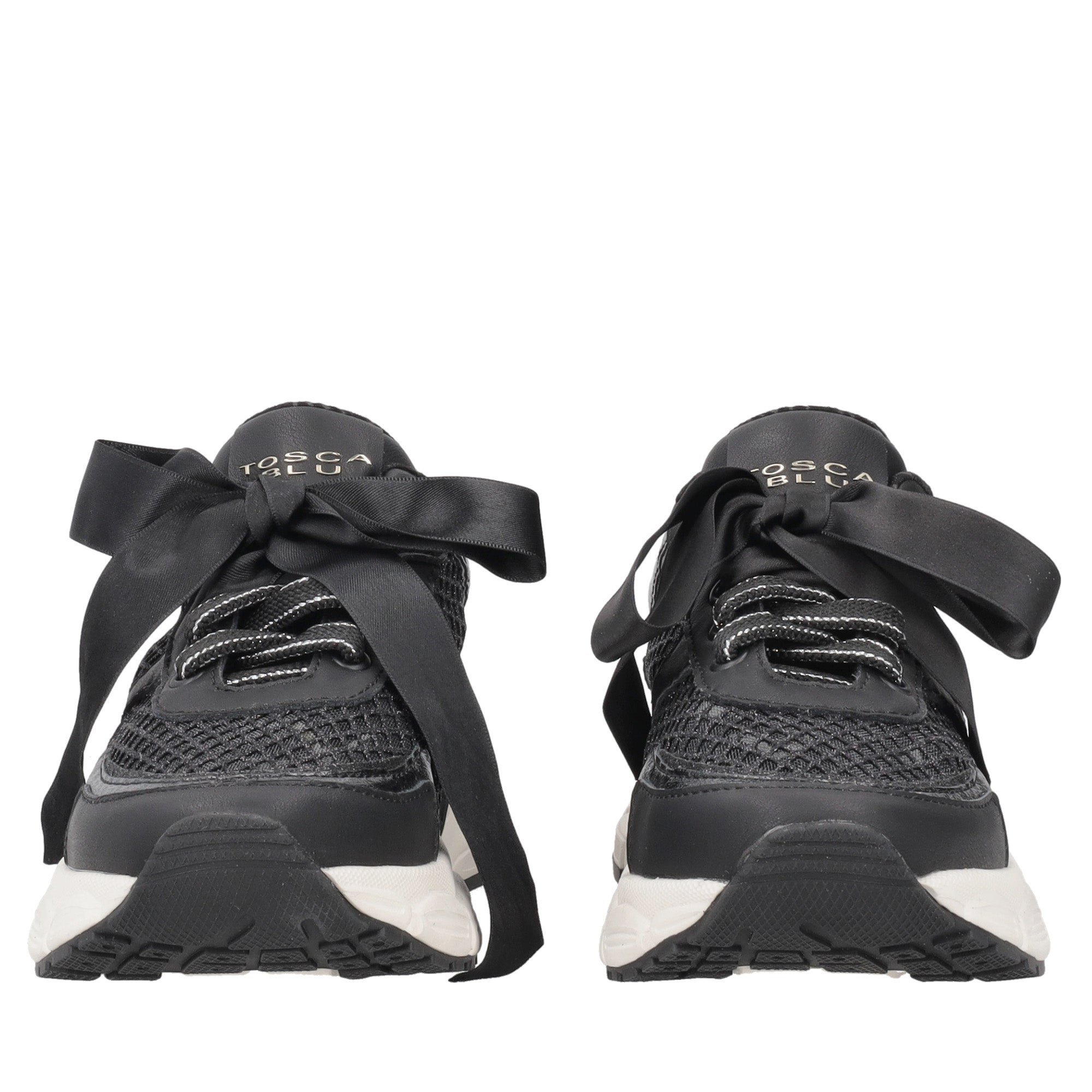 For effortless chic looks, go for these mesh sneakers with a maxi bow by Tosca Blu. Available in black, these shoes combine a lightweight glittery mesh upper with romantic details such as the maxi bow appliqué. Comfort is guaranteed by the chunky sole, an indispensable ally for your busy daily schedule. The mesh sneakers with maxi bow are the perfect combination of comfort and femininity, the key to a dynamic and refined style that is always on trend.