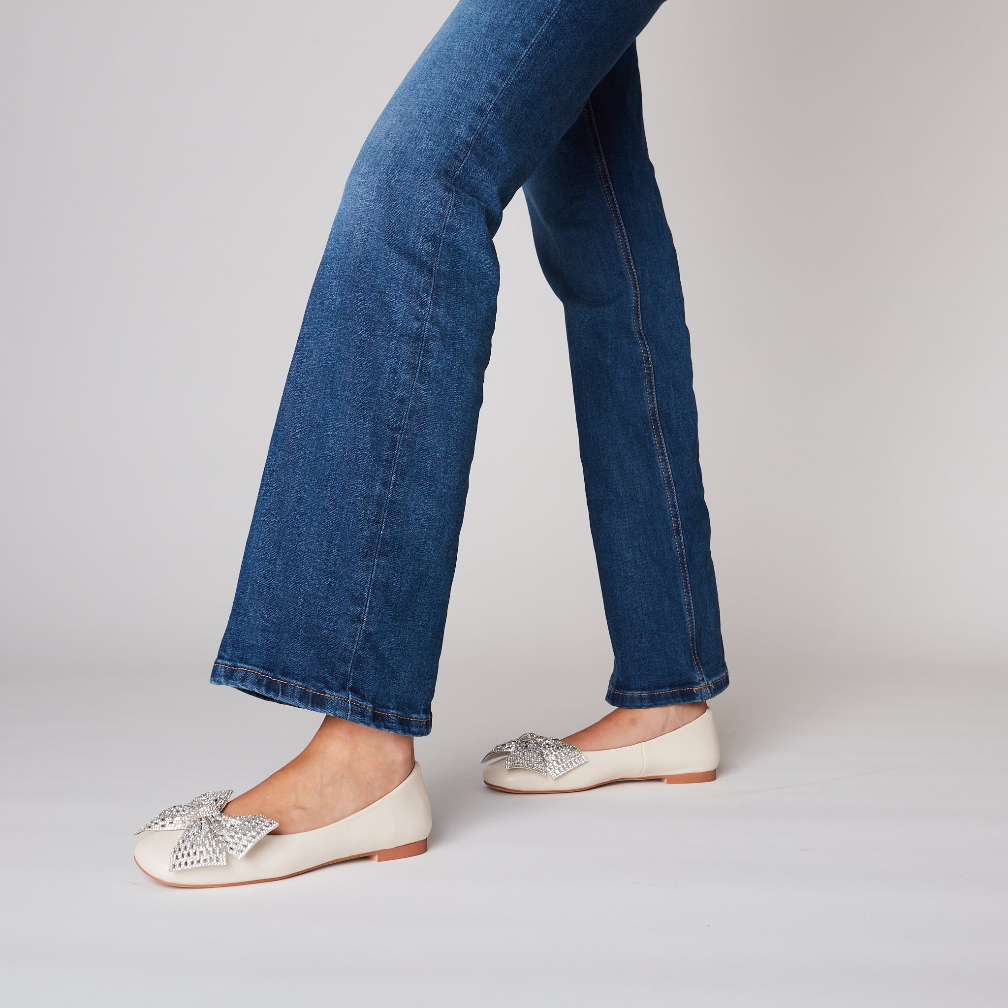 Ivory Eden Ballerina In Leather With Bow