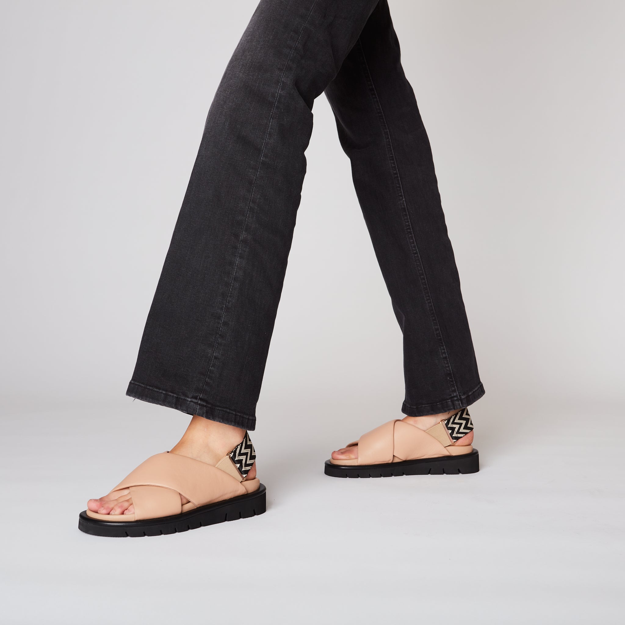 These leather sandals with a crossover design from Tosca Blu are meant for a dynamic woman who seeks versatile comfortable footwear because she spends her days on the go. Cast in beige, they stand out for the crossed design of the snug bands in supple leather which do not only deliver wearability, but also bring an original modern touch. The back strap with geometrical patterning adds to the sleek silhouette and keeps you steady on your feet. Match these crossover leather sandals to some jeans and a T-shirt for casual stylishness or to a floaty dress for a romantic feel.