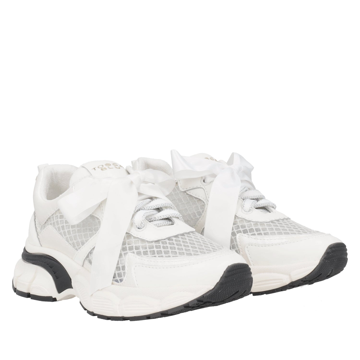 For effortless chic looks, go for these mesh sneakers with a maxi bow by Tosca Blu. Available in white, these shoes combine a lightweight glittery mesh upper with romantic details such as the maxi bow appliqué. Comfort is guaranteed by the chunky sole, an indispensable ally for your busy daily schedule. The mesh sneakers with maxi bow are the perfect combination of comfort and femininity, the key to a dynamic and refined style that is always on trend.