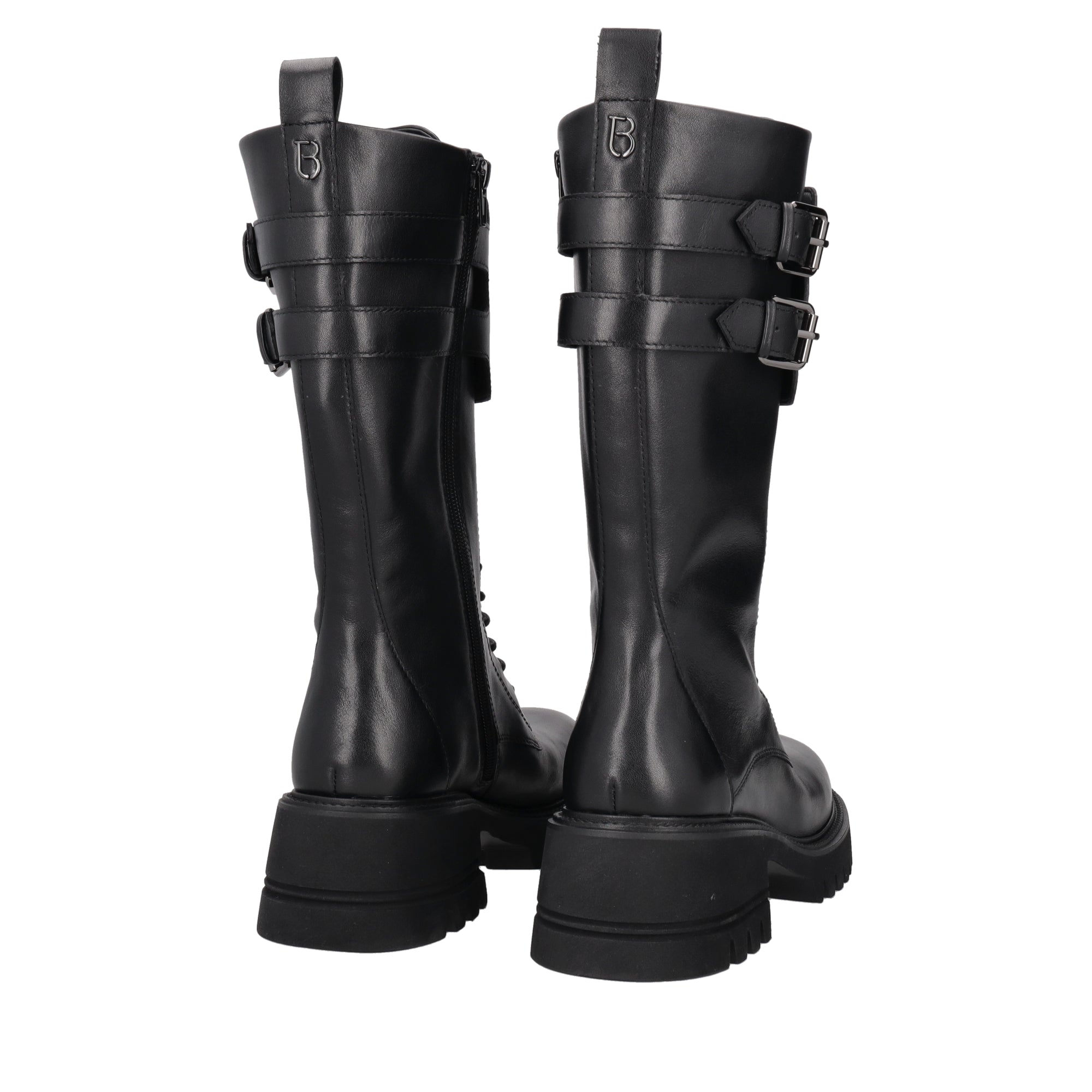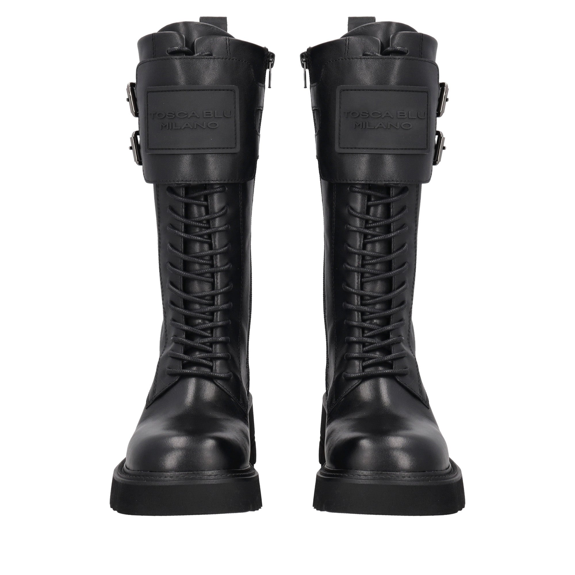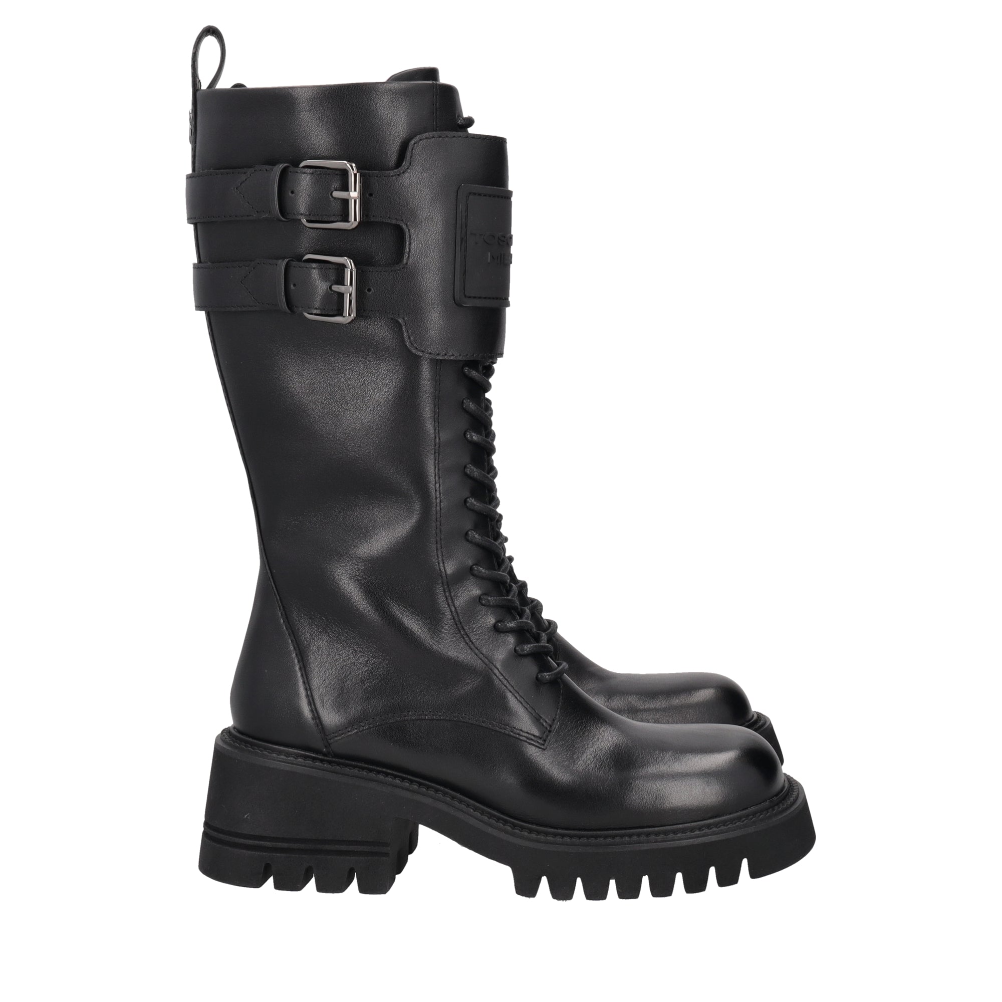 black madeleine leather combat boot with logo