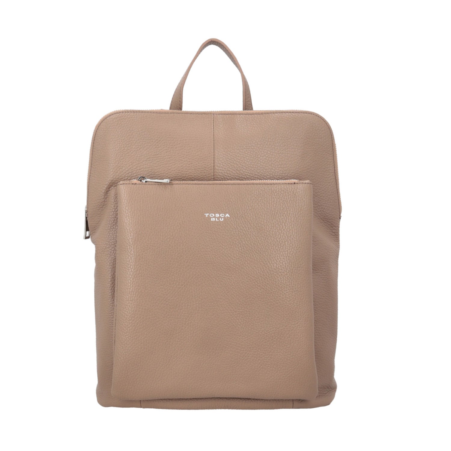 Zaino realizzato in pelle grana naturale. Struttura morbida con un manico, spalline regolabili, chiusura con zip. Costruzione interna a doppio scomparto, 2 tasche interne con zip e 2 tasche porta oggetti. Logo TOSCA BLU stampato.