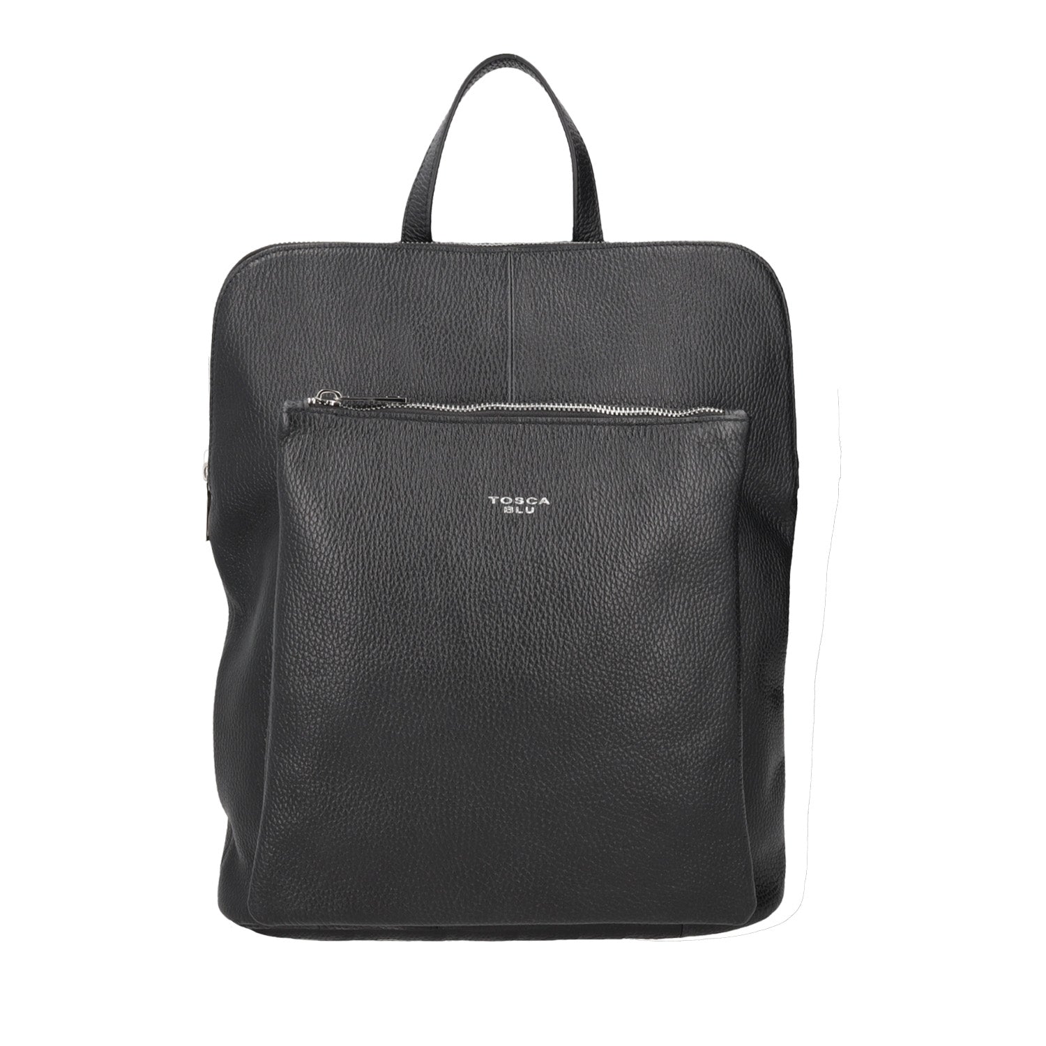 BLACK LEATHER BACKPACK WITH ZIPPER CLOSURE