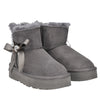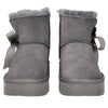 dark grey zoe ankle boot with bow and rhinestone accessory