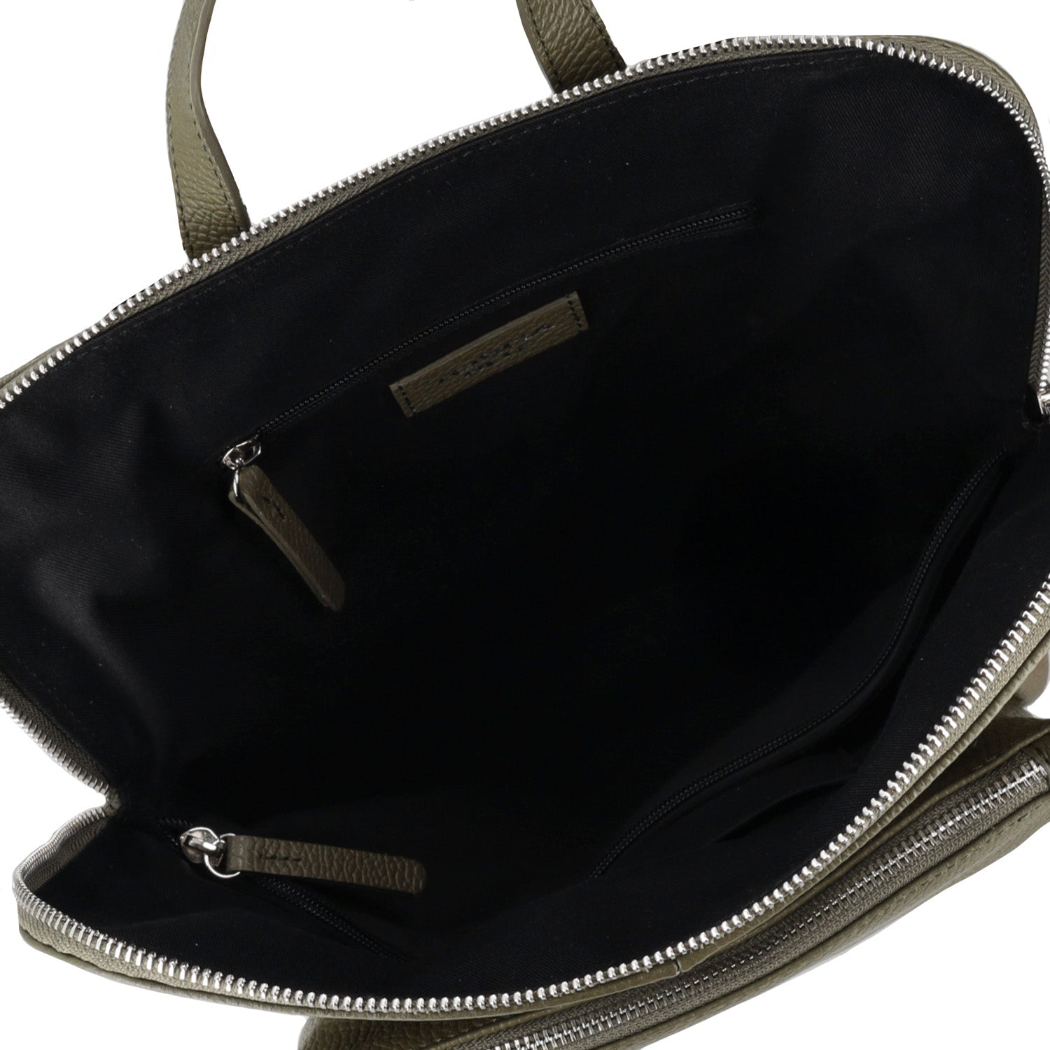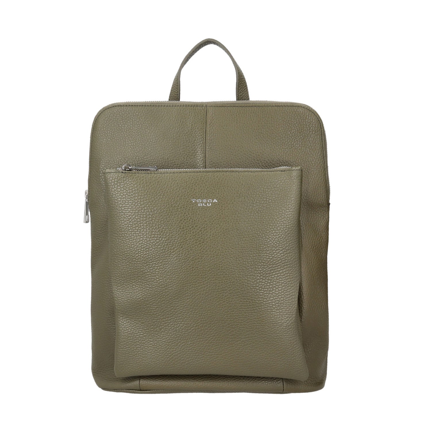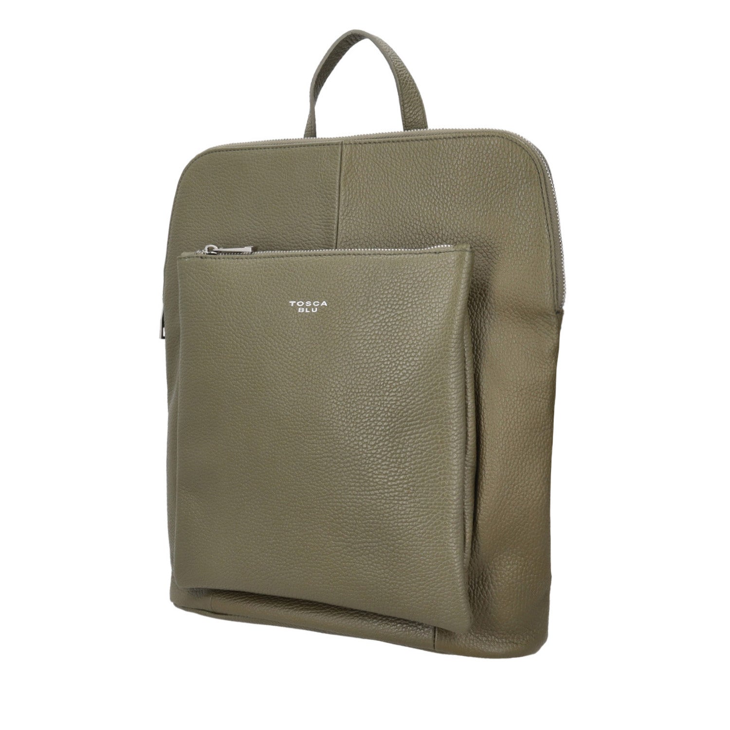 Zaino realizzato in pelle grana naturale. Struttura morbida con un manico, spalline regolabili, chiusura con zip. Costruzione interna a doppio scomparto, 2 tasche interne con zip e 2 tasche porta oggetti. Logo TOSCA BLU stampato.