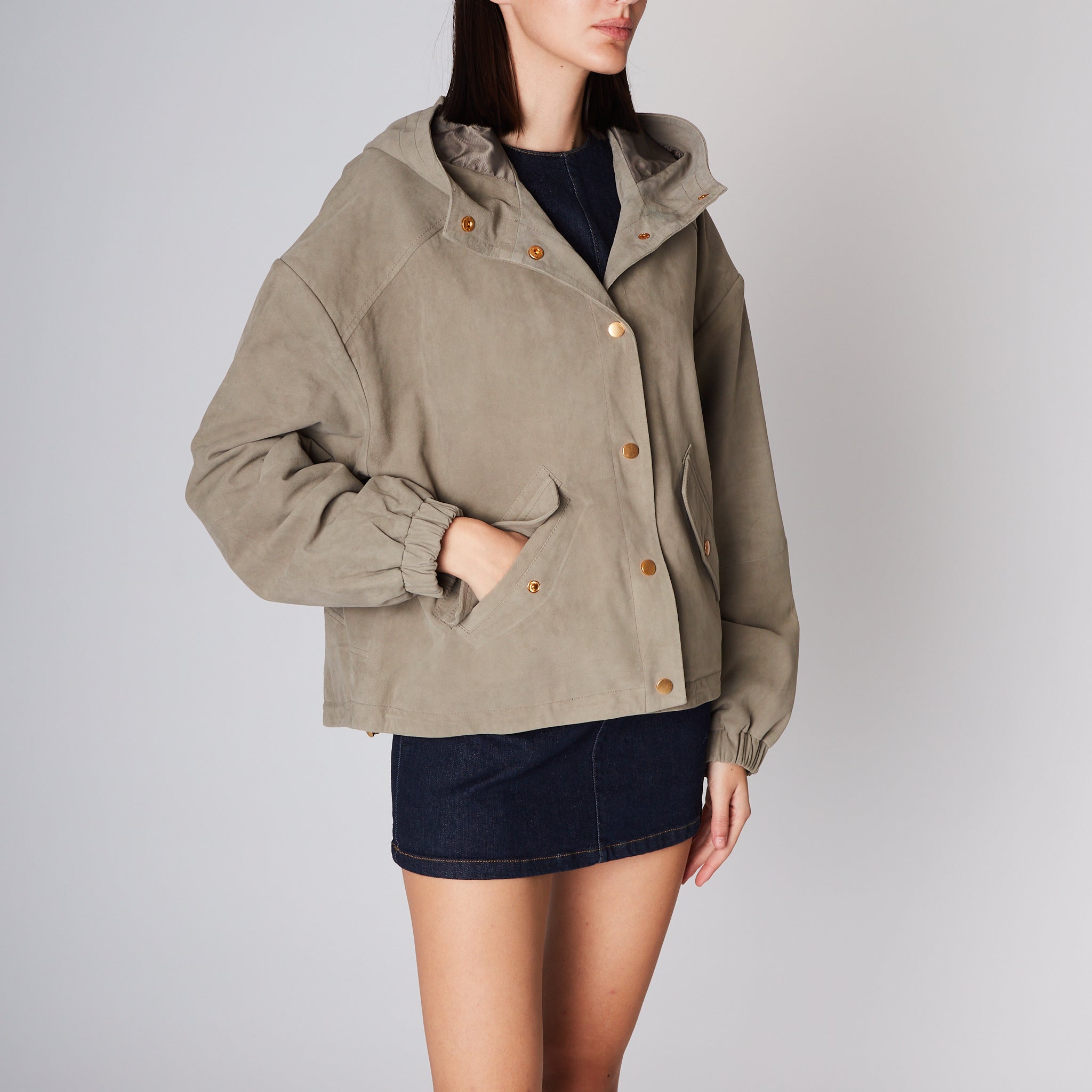 Green Suede Jacket With Hood