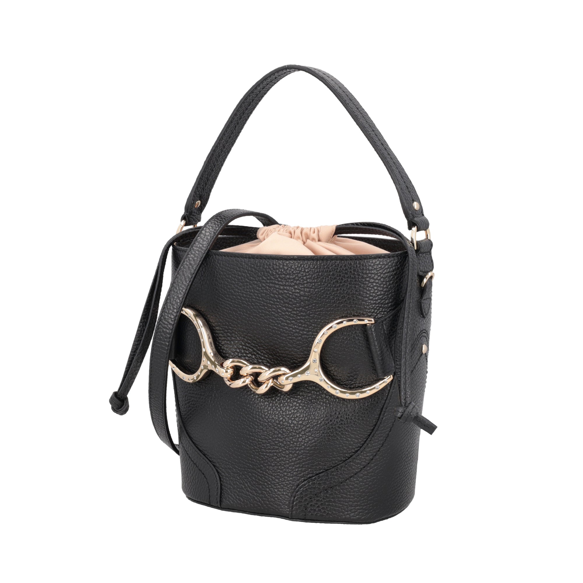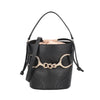 Cecilia leather bucket bag with black bracket