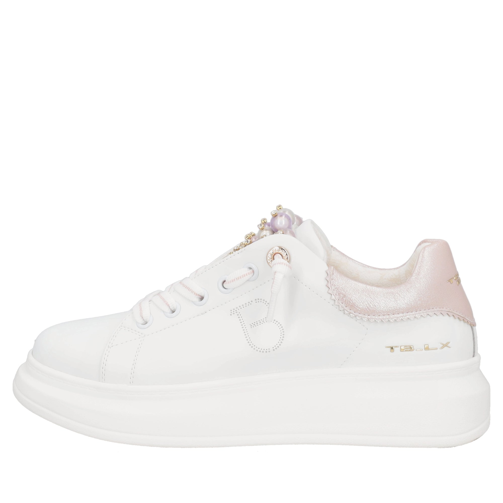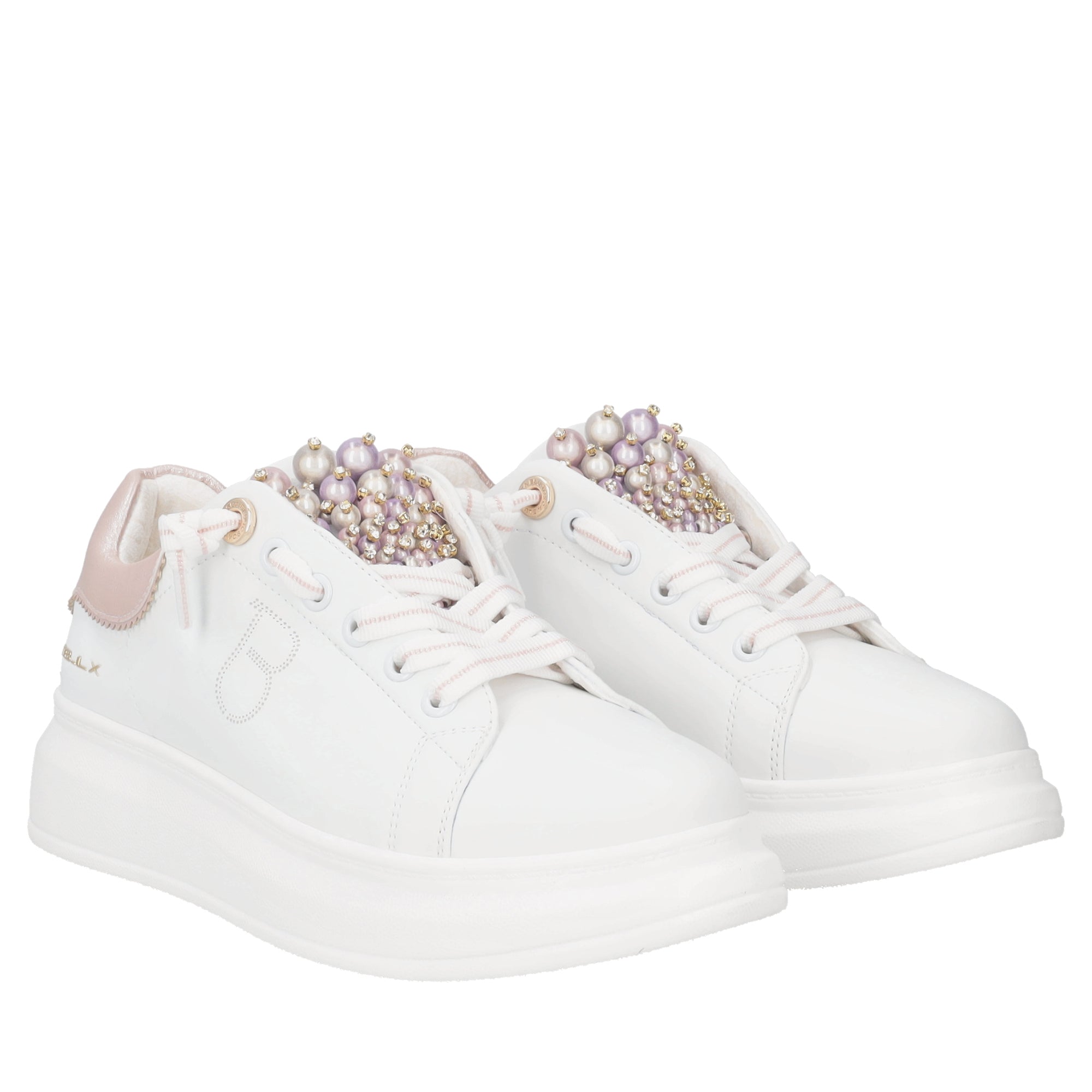 Astrid leather sneakers with white/pink pearls