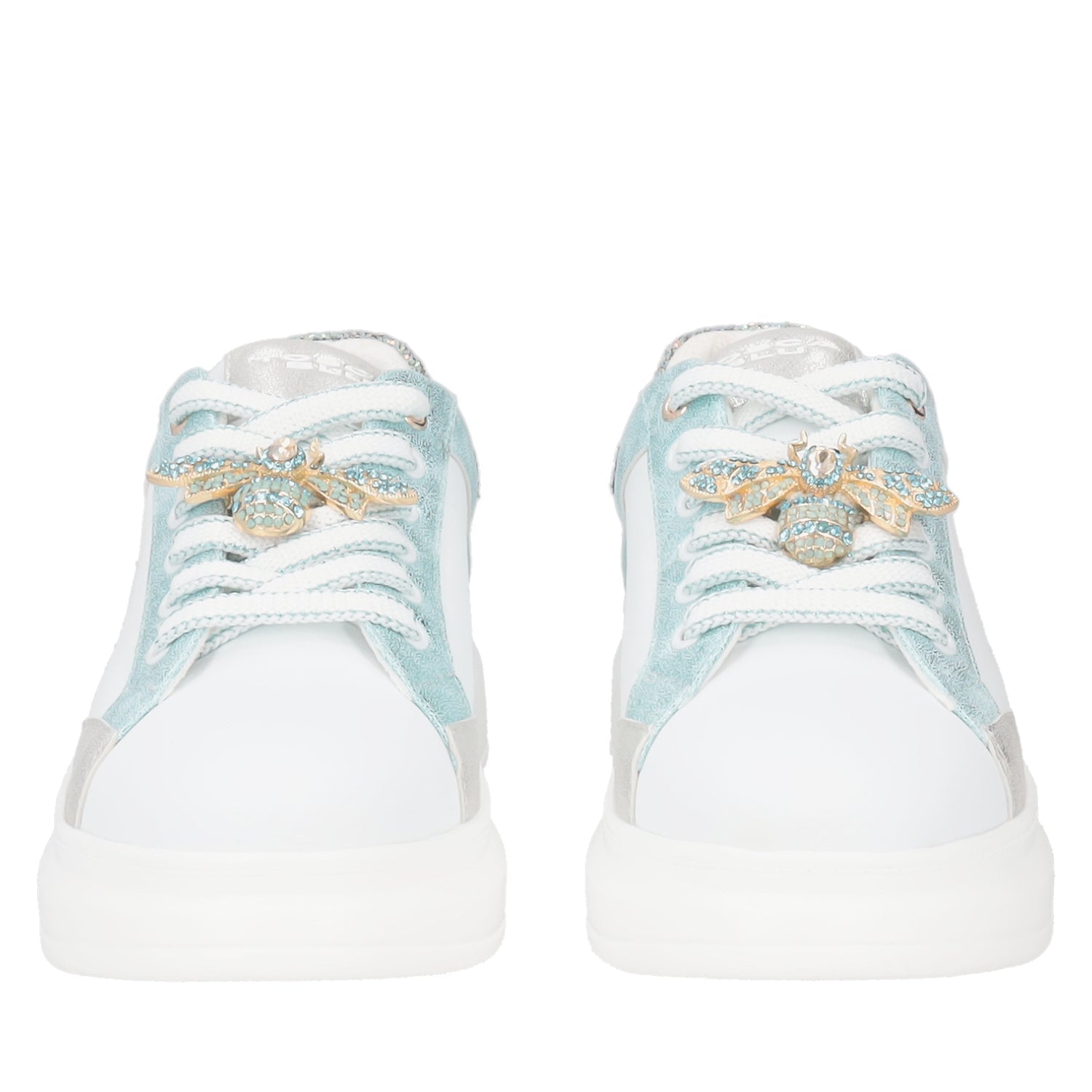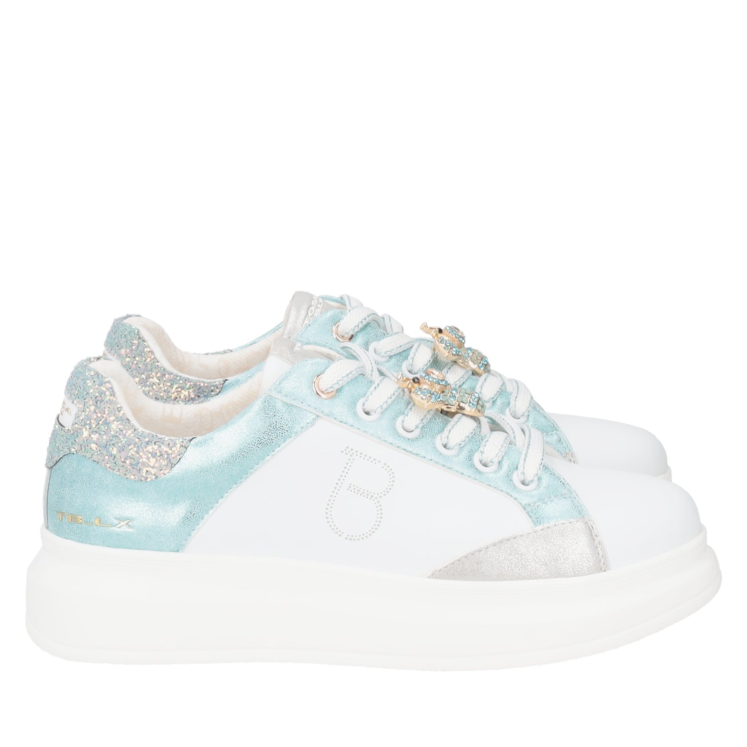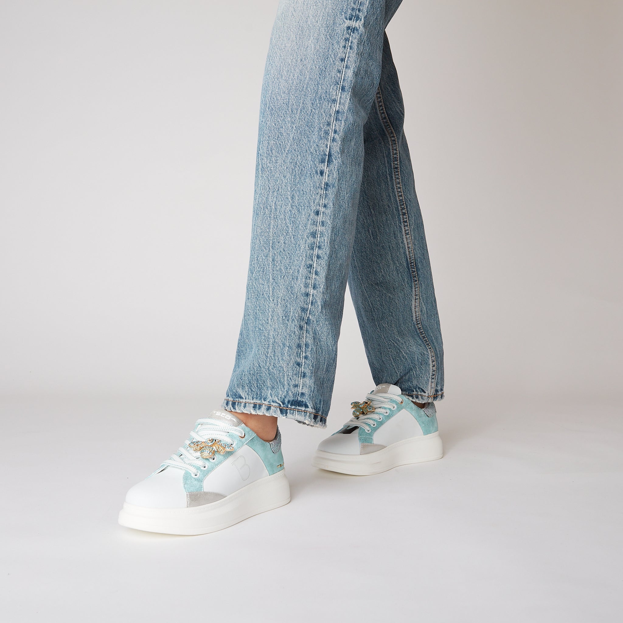 WHITE/AQUA BELLATRIX LEATHER SNEAKER WITH ACCESSORY