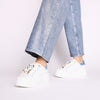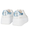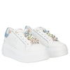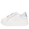Elevate your everyday style with the new white leather sneakers with blue details by Tosca Blu. Easy to slip on and soft to wear, these high-soled shoes are embellished with eye-catching sparkling pearls on the laces, adding a touch of glamour to your style. These leather sneakers will accompany you with comfort and elegance on any occasion.