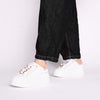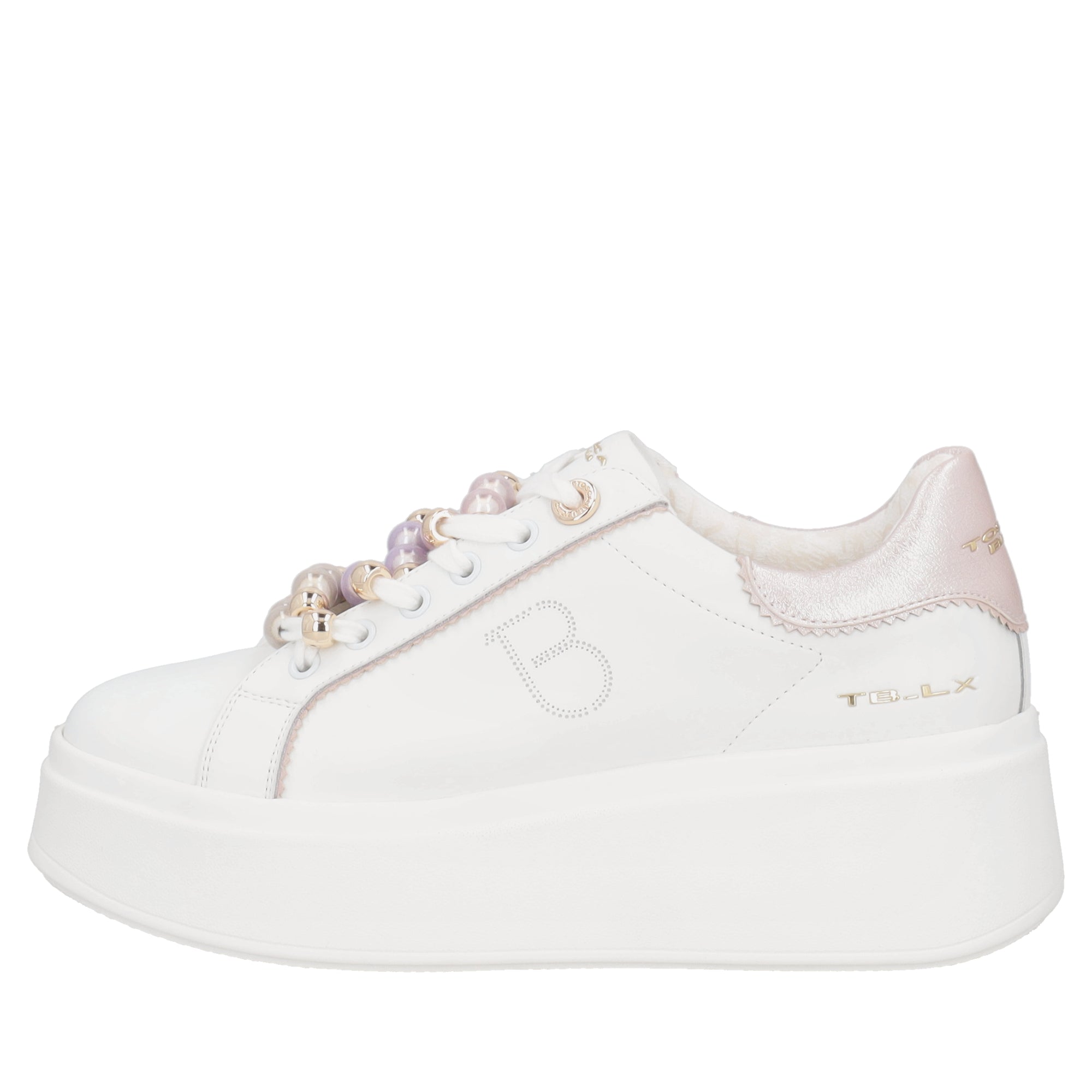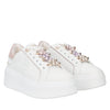 Elevate your everyday style with the new white leather sneakers with pink details by Tosca Blu. Easy to slip on and soft to wear, these high-soled shoes are embellished with eye-catching sparkling pearls on the laces, adding a touch of glamour to your style. These leather sneakers will accompany you with comfort and elegance on any occasion.