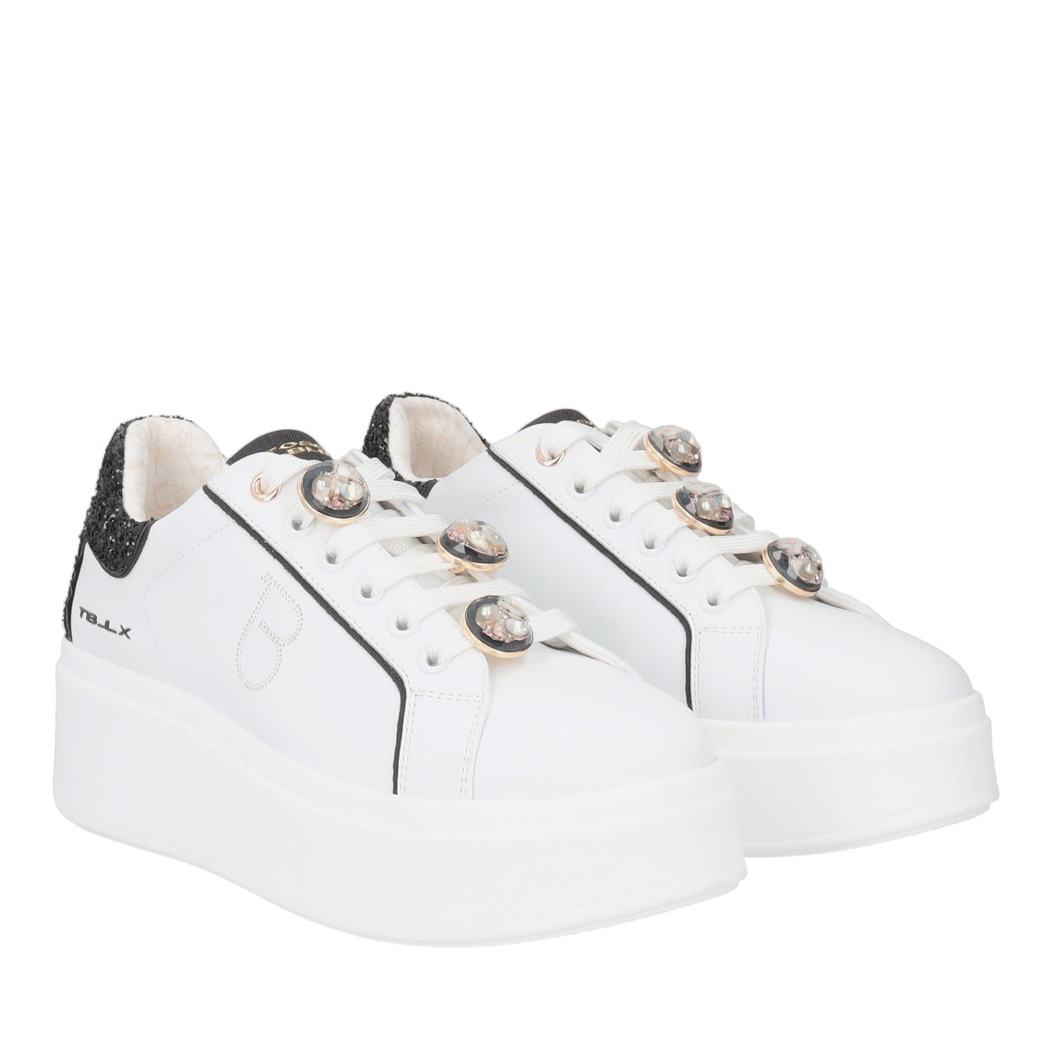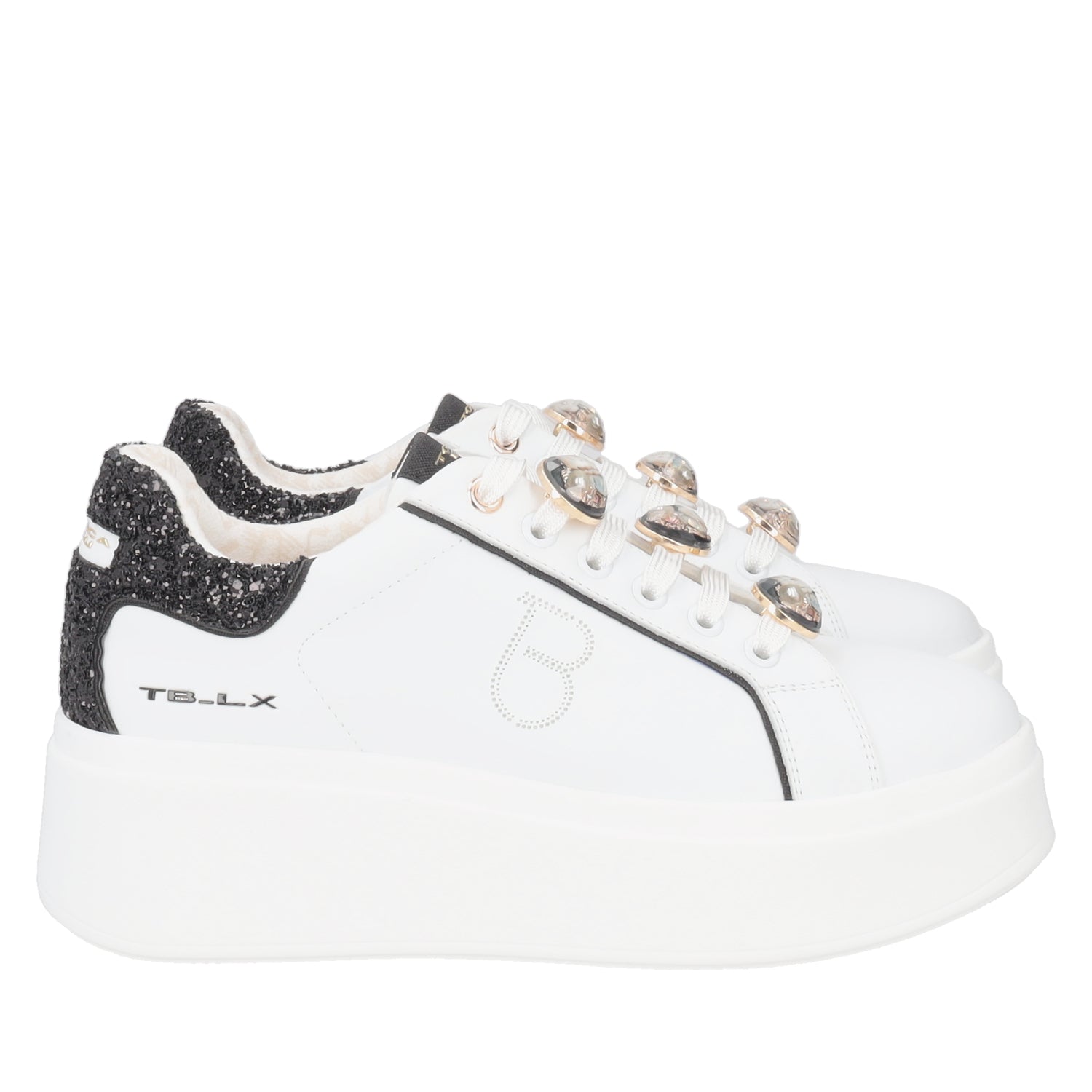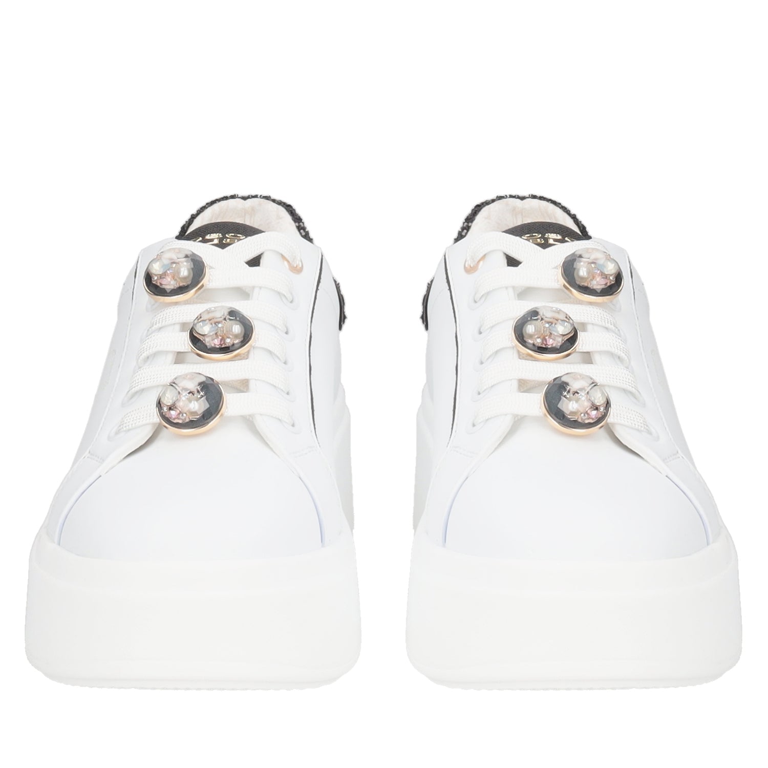 WHITE/BLACK ELETTRA SNEAKER WITH JEWEL ACCESSORIES