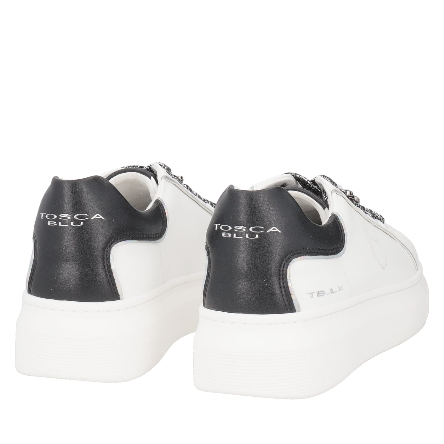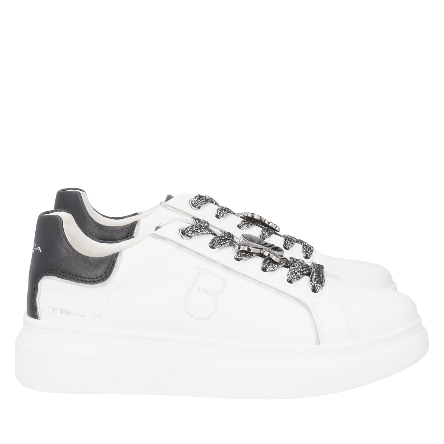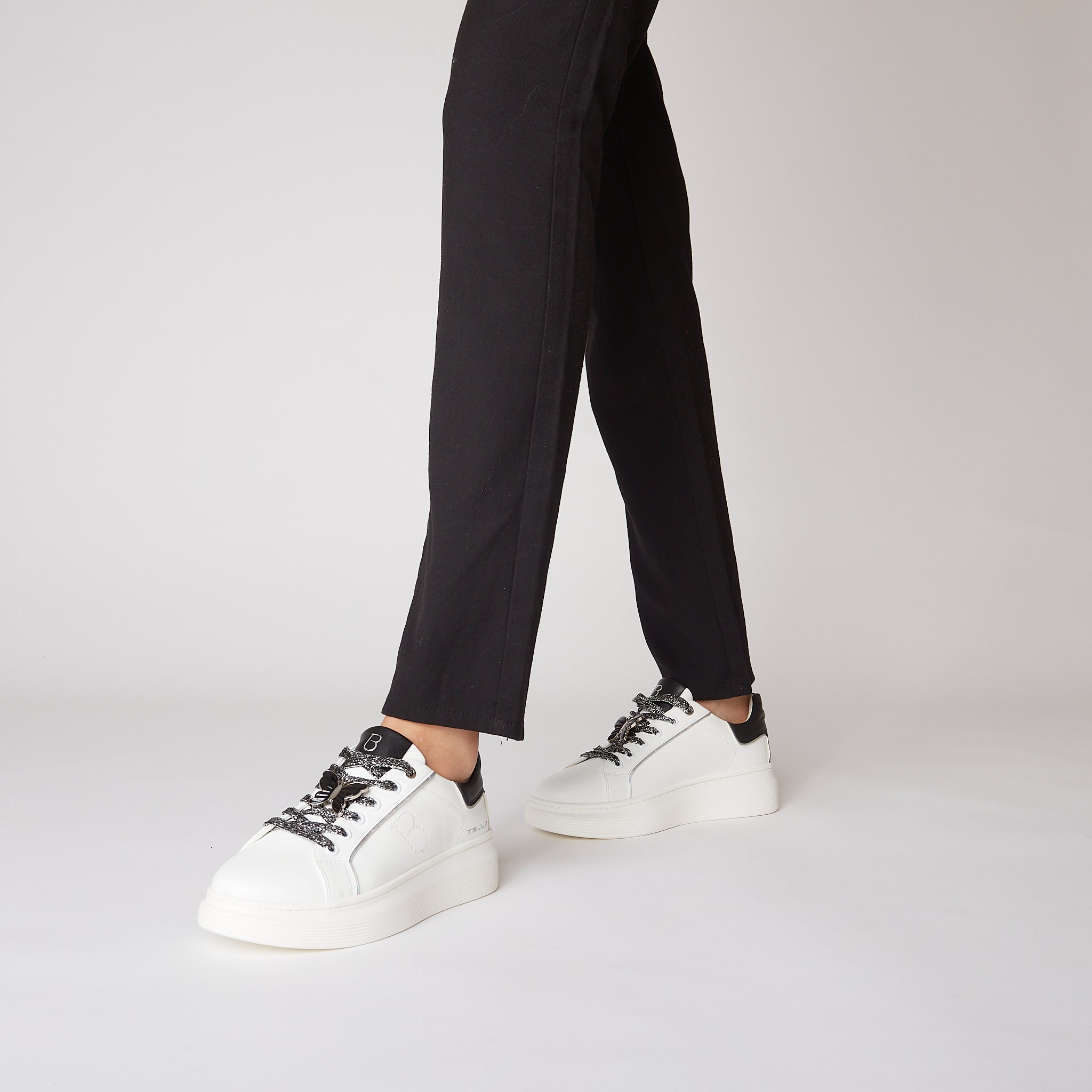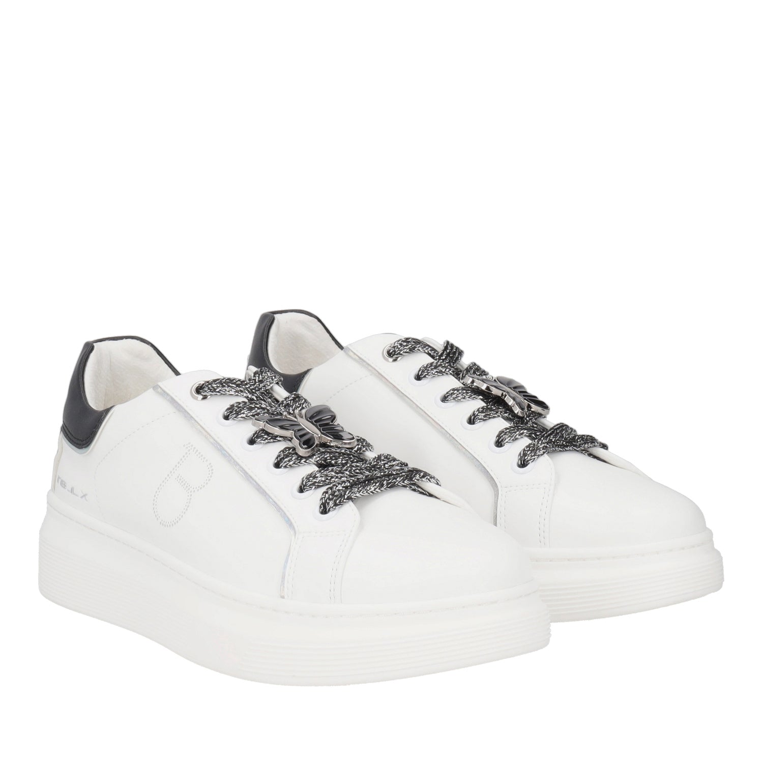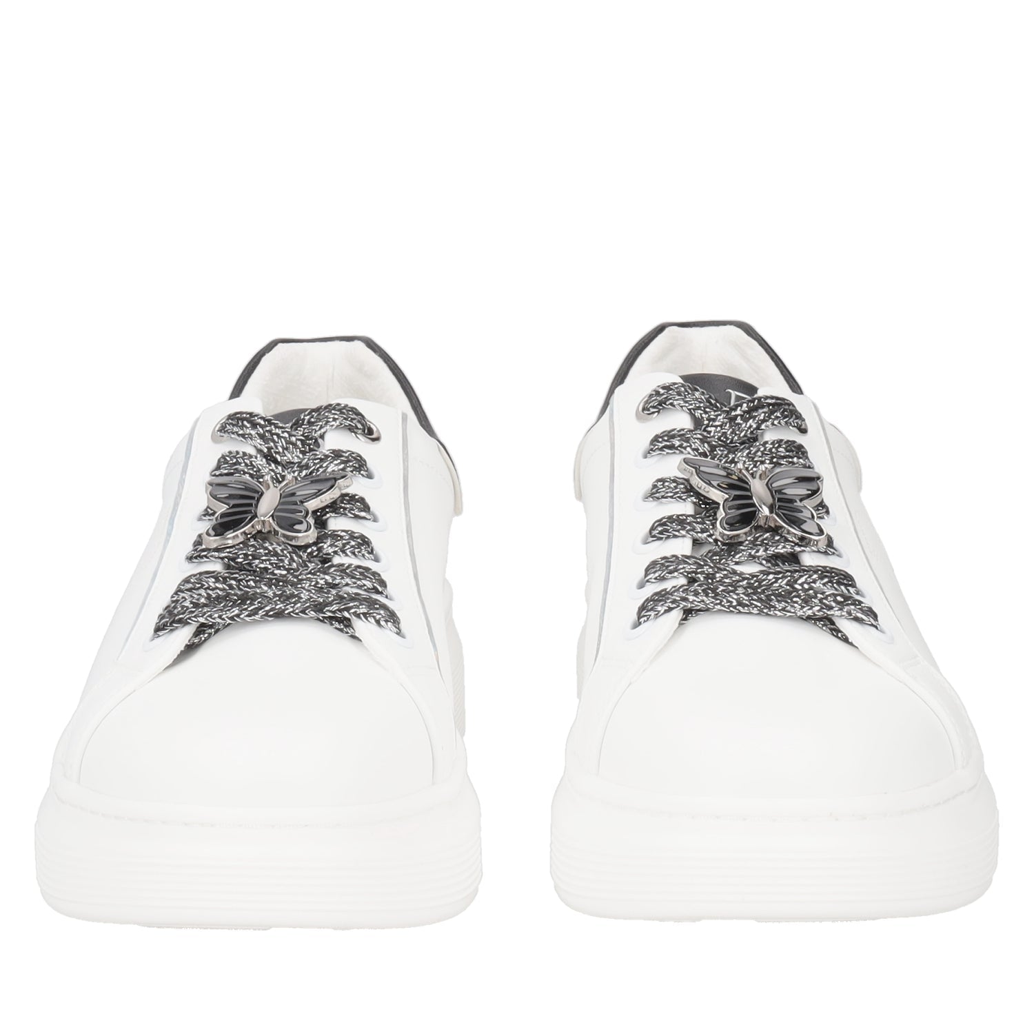 WHITE/BLACK FENICE LEATHER SNEAKER WITH BUTTERFLY