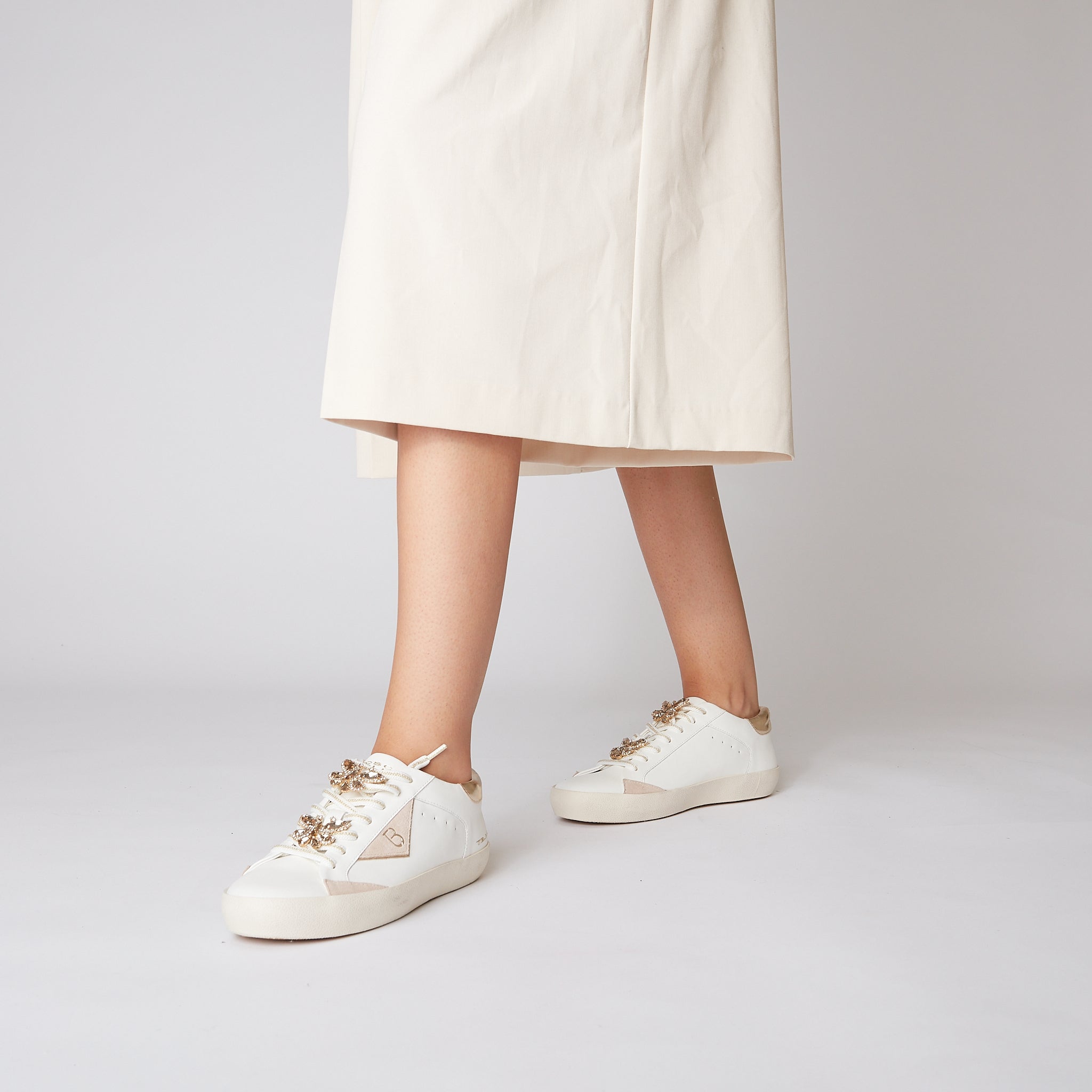 MILK/GOLD SIRIUS SNEAKER WITH JEWEL BUTTERFLIES