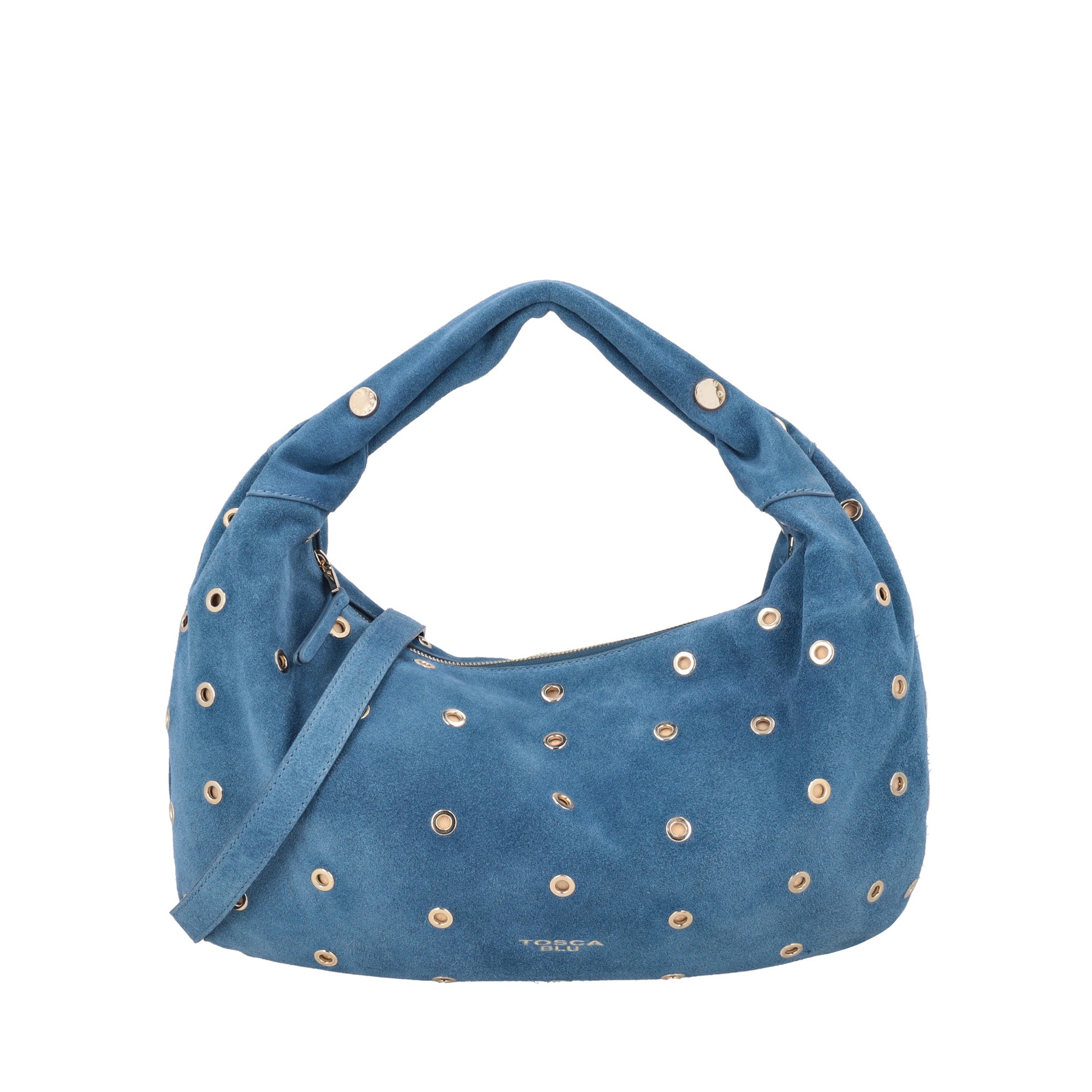 Esprimi la tua personalità con la borsa a spalla in suede di colore blu. Il logo Tosca Blu, applicato con eleganza, sottolinea l'attenzione ai dettagli, mentre lo scomparto interno con pratica chiusura a zip offre ampio spazio per tutto ciò che desideri portare con te. Pratica e versatile, questa borsa a spalla in suede di Tosca Blu è l'accessorio a cui non potrai più rinunciare!