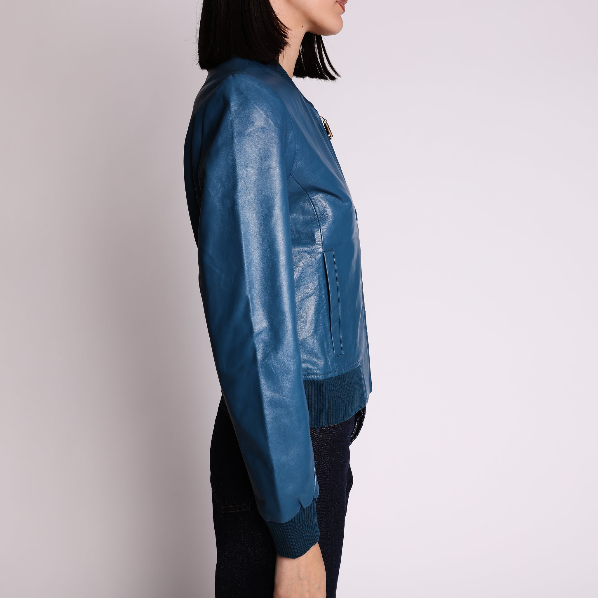 Giubbino in pelle colore blu