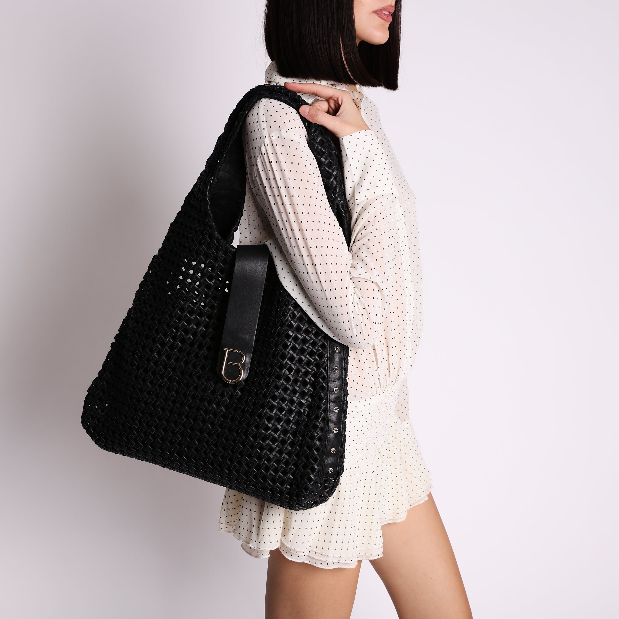 Se cerchi una borsa capiente e pratica senza voler rinunciare allo stile, allora questa borsa a sacca in pelle intrecciata di colore nero firmata Tosca Blu farà al caso tuo. Dotata di un ampio scomparto con chiusura a linguetta e laccio, questa borsa a sacca in pelle intrecciata saprà accompagnarti con eleganza in ogni momento della giornata: perfetta per l'ufficio, dove può contenere tutto il necessario, o per un pomeriggio di shopping in città.
