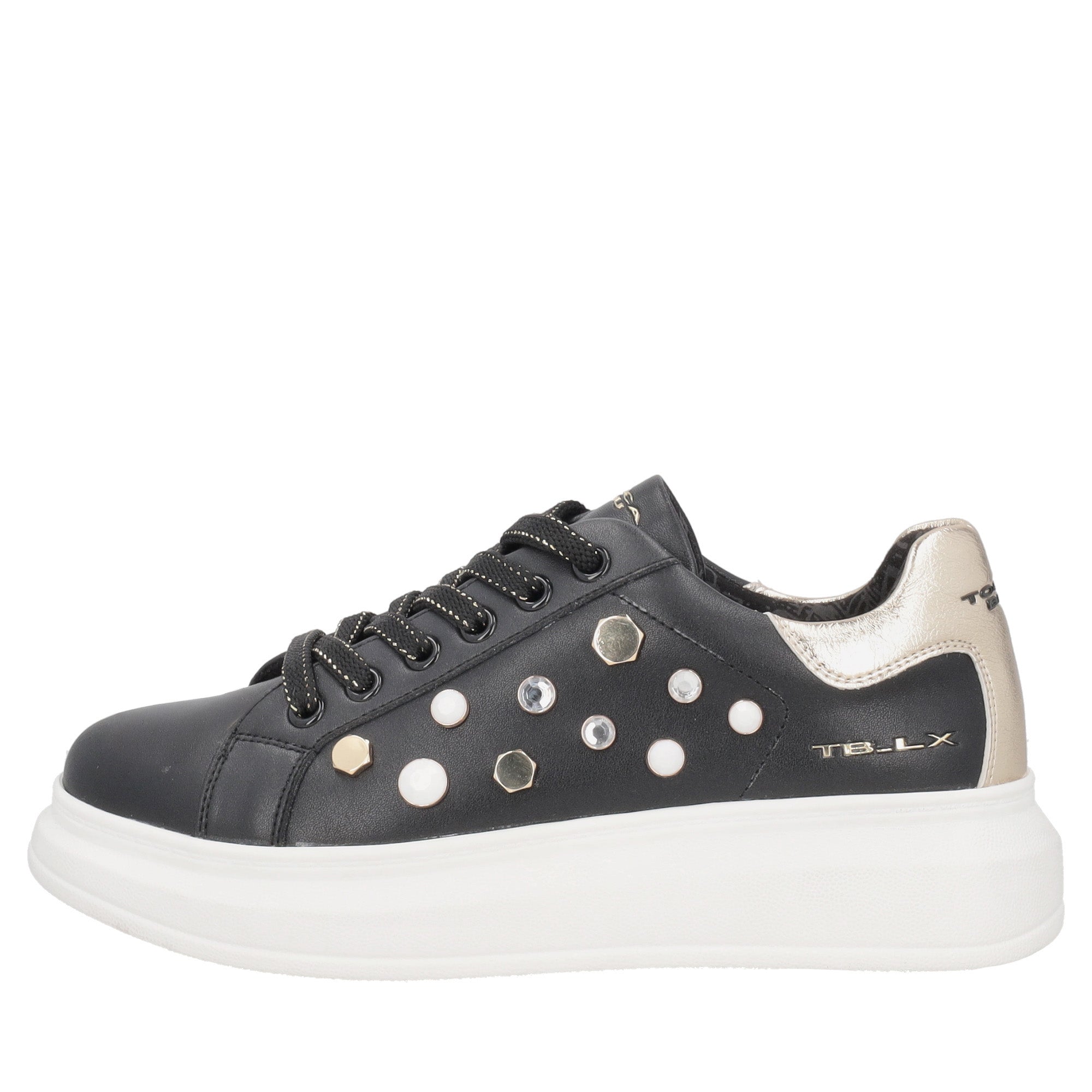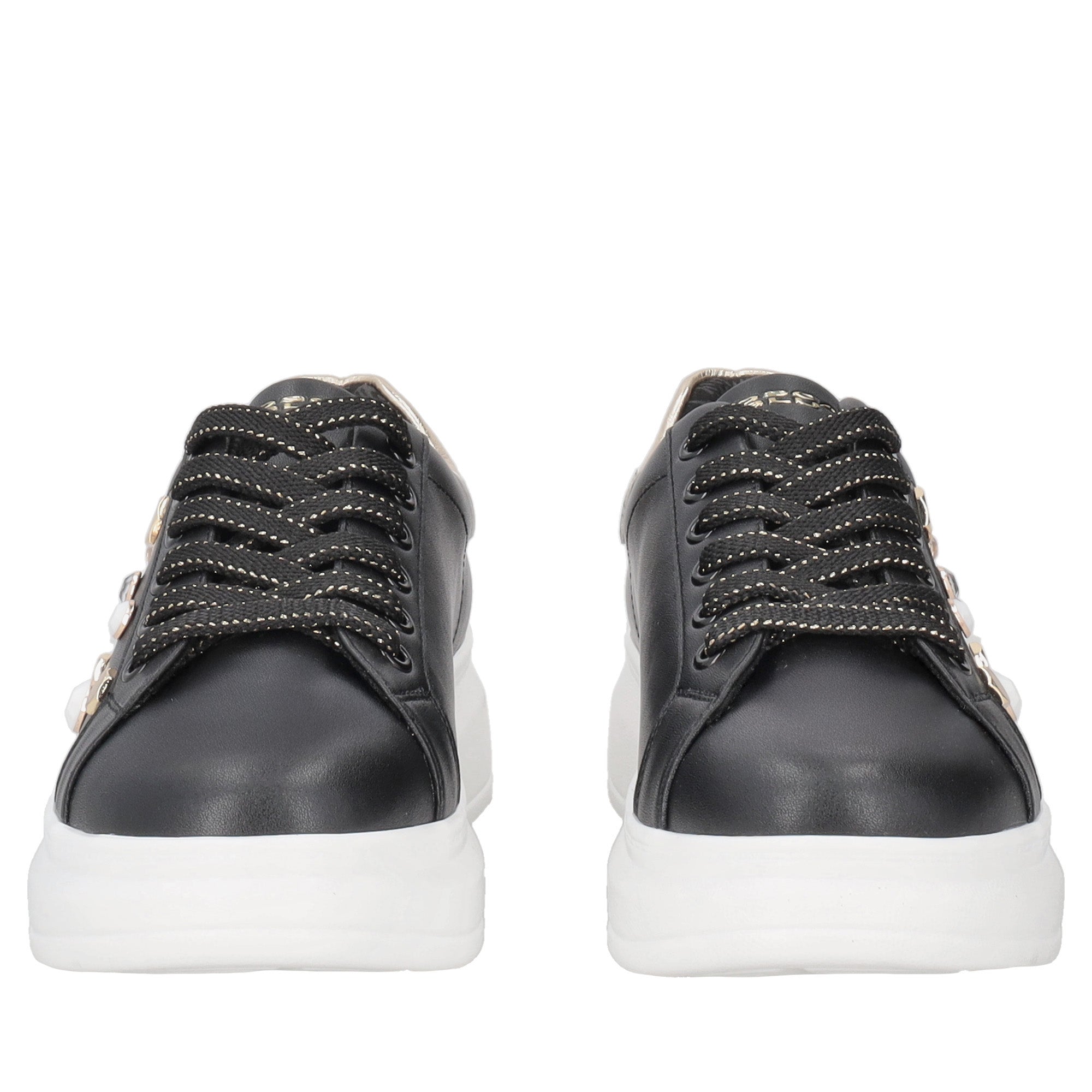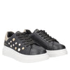 Tosca Blu firma questa sneaker in pelle nera per rendere speciali le tue occasioni. Questo modello è impreziosito da dettagli in contrasto e borchie che aggiungono un tocco glamour ai tuoi outfit. Con suola platform alta, il logo in contrasto sul tallone e sulla linguetta è una sneaker in pelle ideale per chi ama distinguersi con gusto.