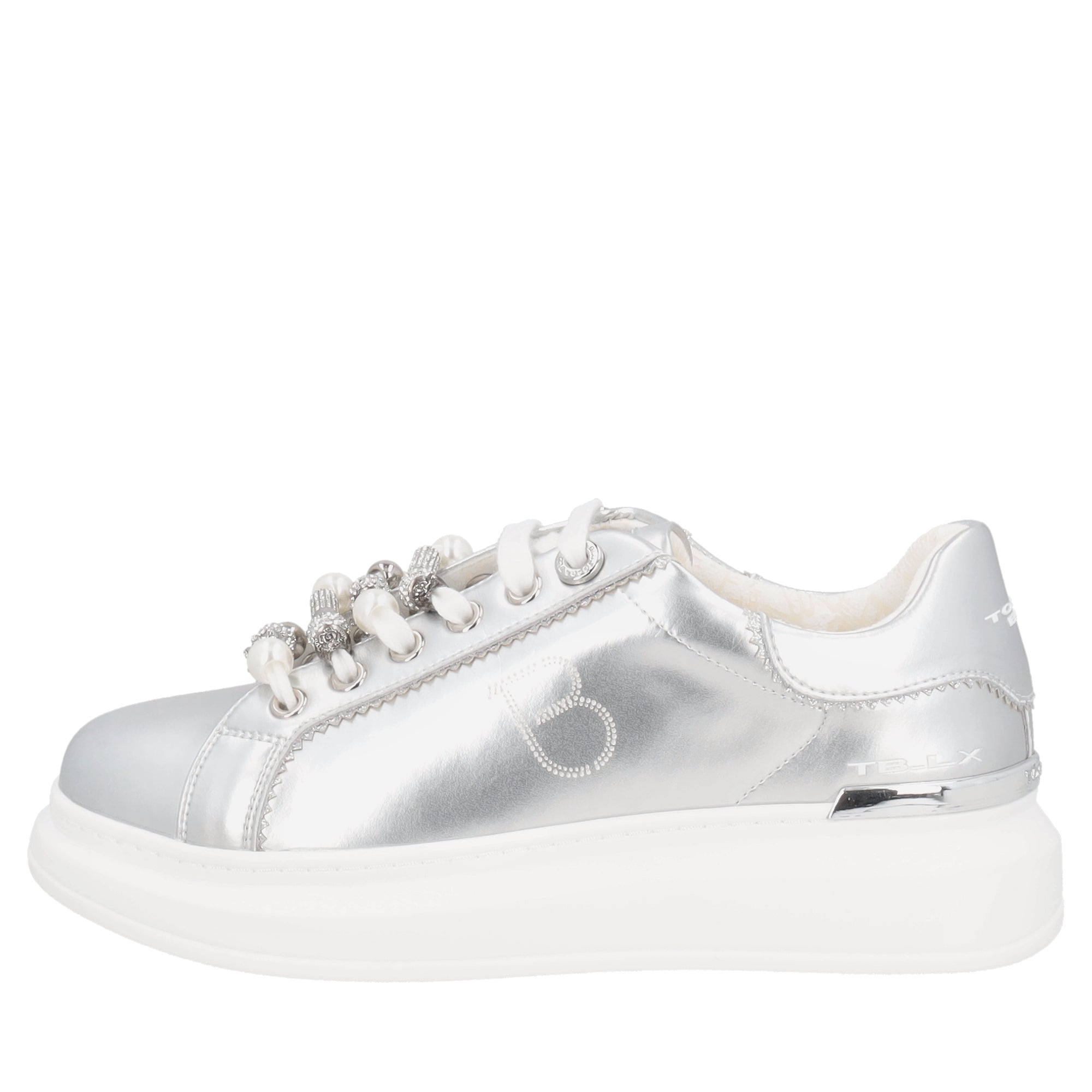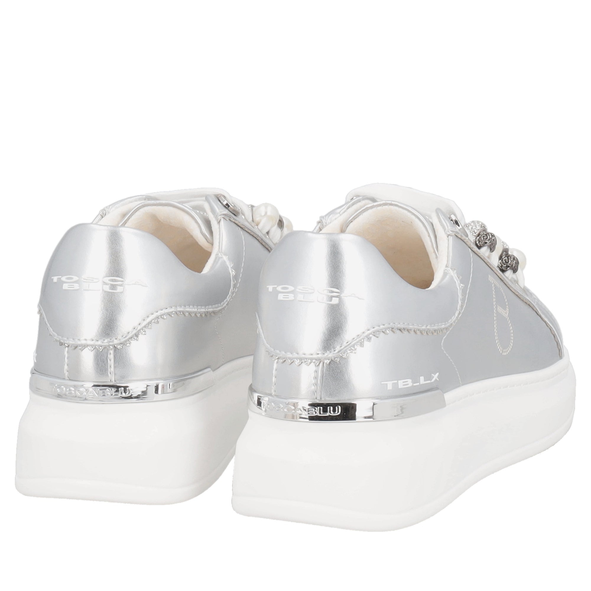 Lasciati sedurre dalla luce inconfondibile delle sneaker in pelle color argento firmate Tosca Blu. Queste scarpe non sono solo un accessorio, ma una vera dichiarazione di stile per la donna che ama osare. La vera magia è racchiusa nei preziosi charms sull'allacciatura: un tripudio di perle e strass che aggiunge un tocco di glamour. Immancabile la suola platform, perfetta per accompagnarti comodamente in ogni appuntamento della giornata. Indossa queste sneaker in pelle e goditi un’eleganza senza limiti.