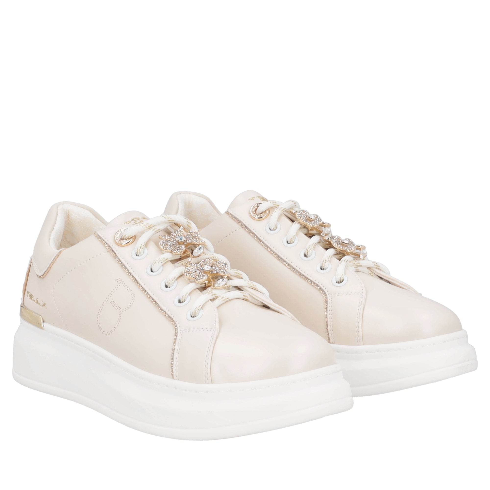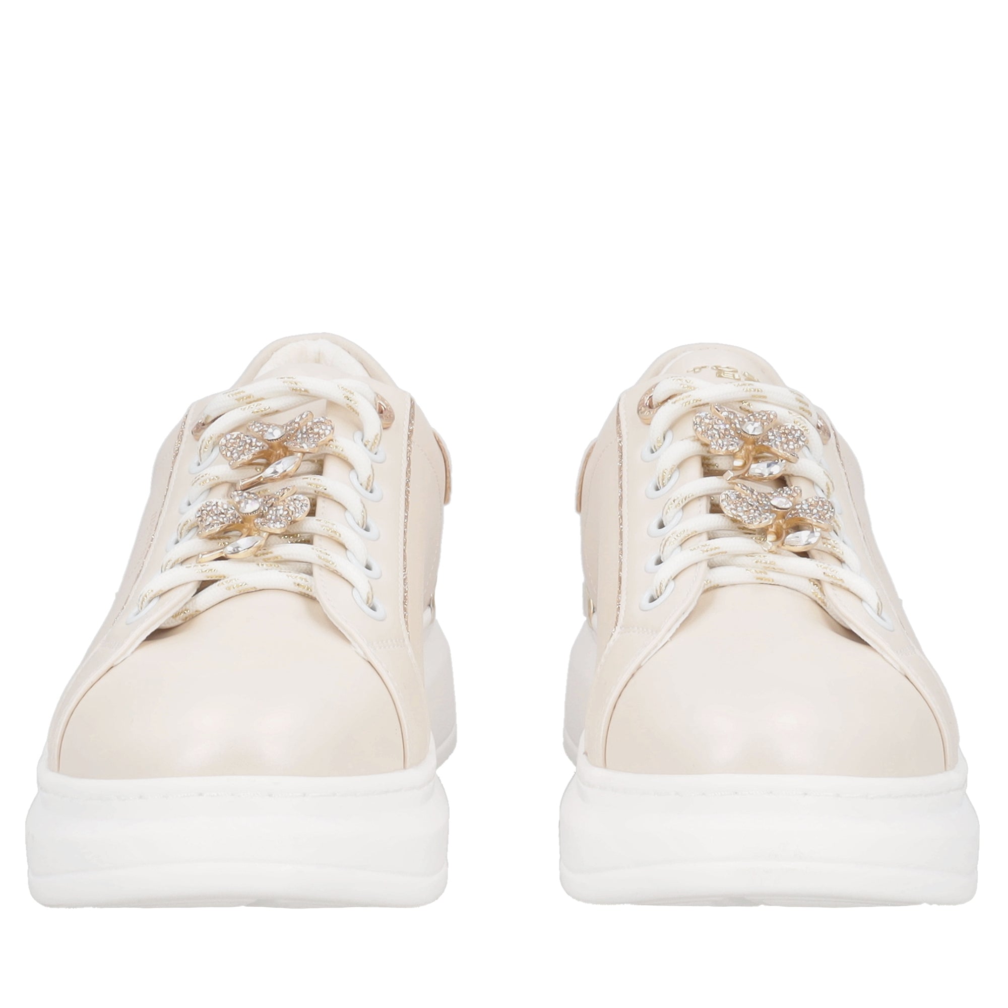 Sneaker Carol in pelle con fiori in strass colore beige