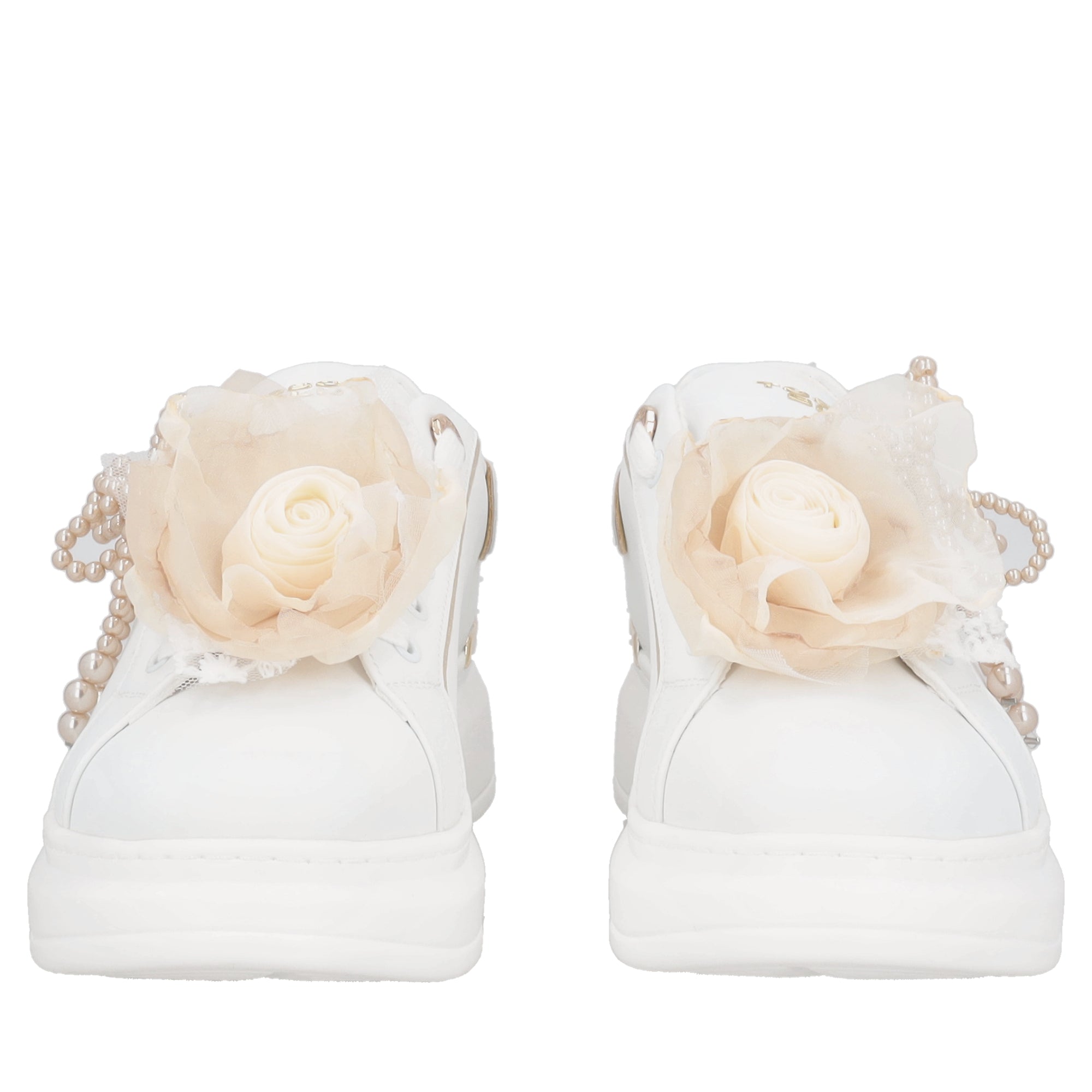 Sneaker Carol in pelle con maxi fiore in tulle colore bianco/beige