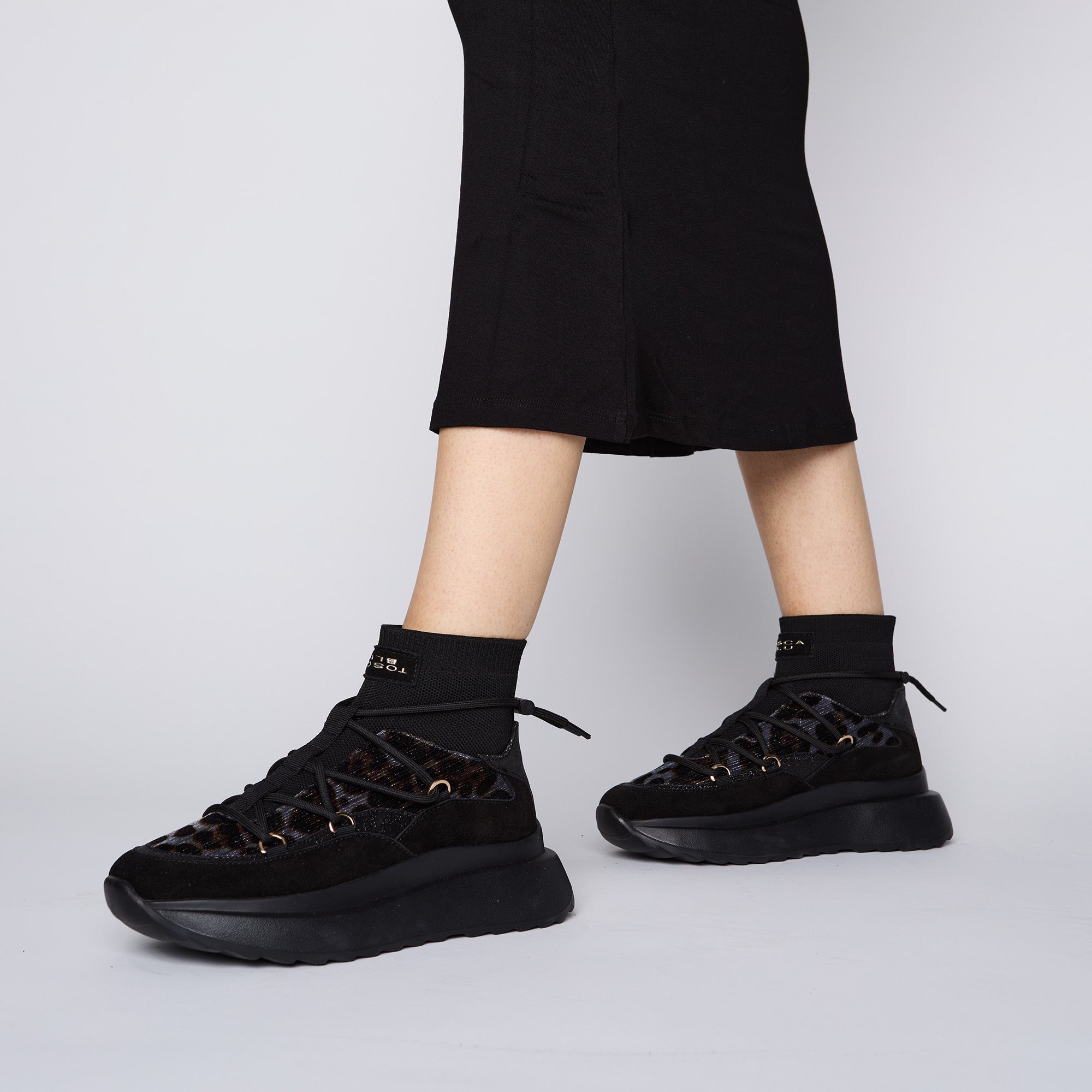 Aggiungi un tocco di grinta al tuo look con queste sneakers chill-out firmate Tosca Blu. Caratterizzate da una texture audace che cattura lo sguardo, queste scarpe sono perfette per la donna che non ha paura di esprimere la propria personalità. La stampa animalier, declinata in color testa di moro, è impreziosita da dettagli glitterati che aggiungono un tocco di luce e originalità. La chiusura con lacci tubolari passanti attraverso anelli metallici e la suola platform assicurano una calzata personalizzata e confortevole. Il logo Tosca Blu, discretamente posizionato sulla linguetta, testimonia l'attenzione al dettaglio e la qualità del brand in queste sneakers chill-out con stampa animalier.