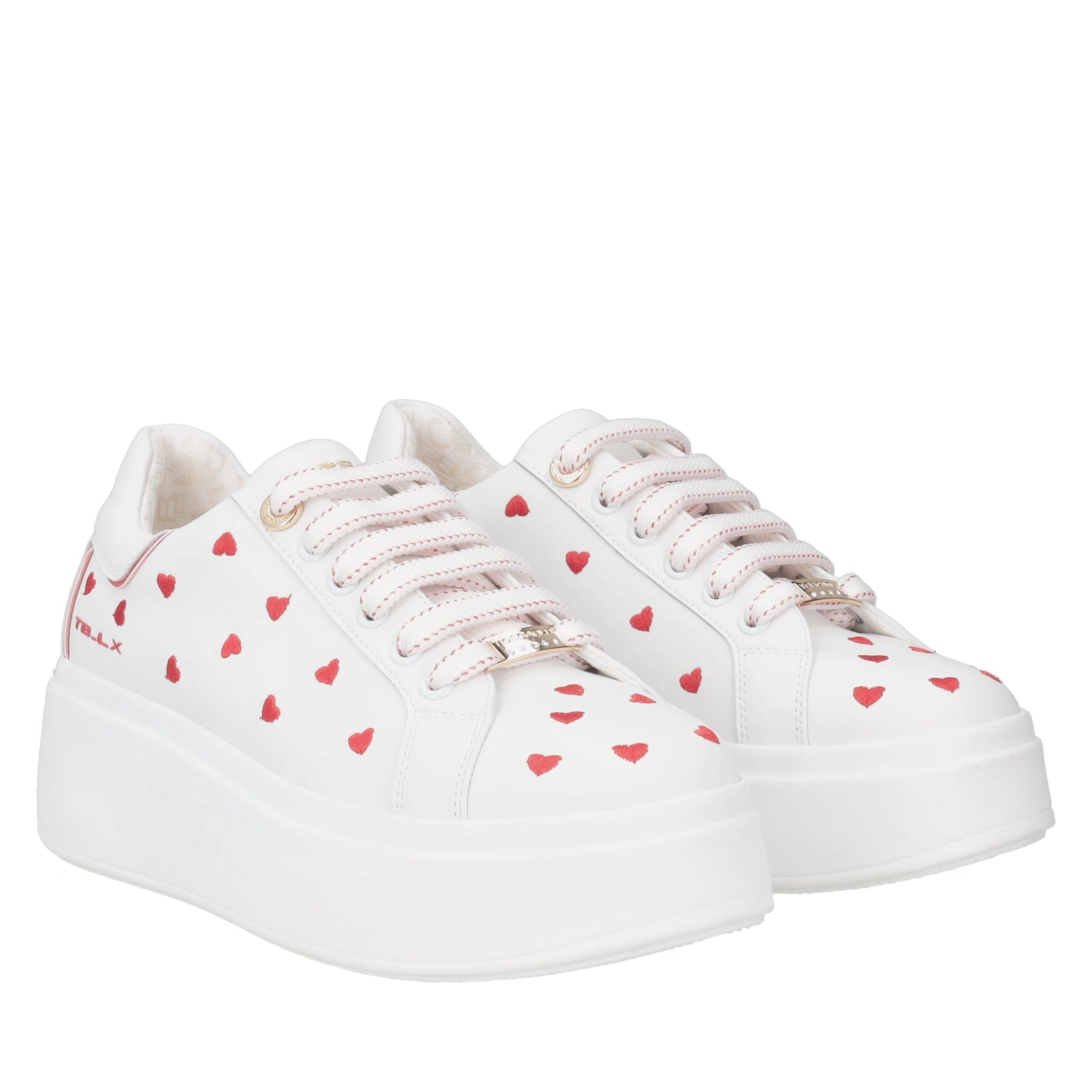 Rendi indimenticabili i tuoi momenti con questa sneaker in pelle bianca arricchita da cuori ricamati di colore rosso. La suola platform alta slancia la figura e aggiunge un tocco audace, mentre l’imbottitura interna e il logo applicato sul tallone completano questa sneaker in pelle ideale per chi ama distinguersi con gusto. Abbinala con qualsiasi outfit, dai jeans ai vestiti più formali.
