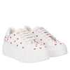 Sneaker Clara in pelle con cuori ricamati colore bianco/rosso