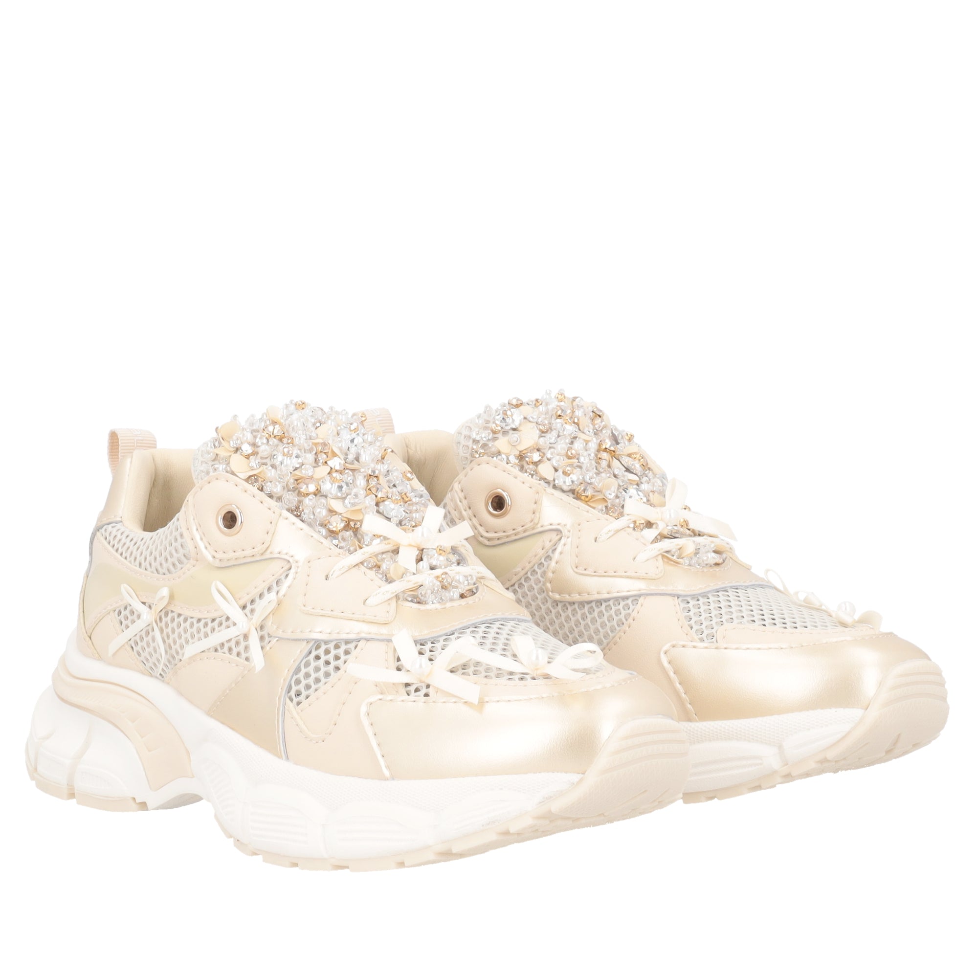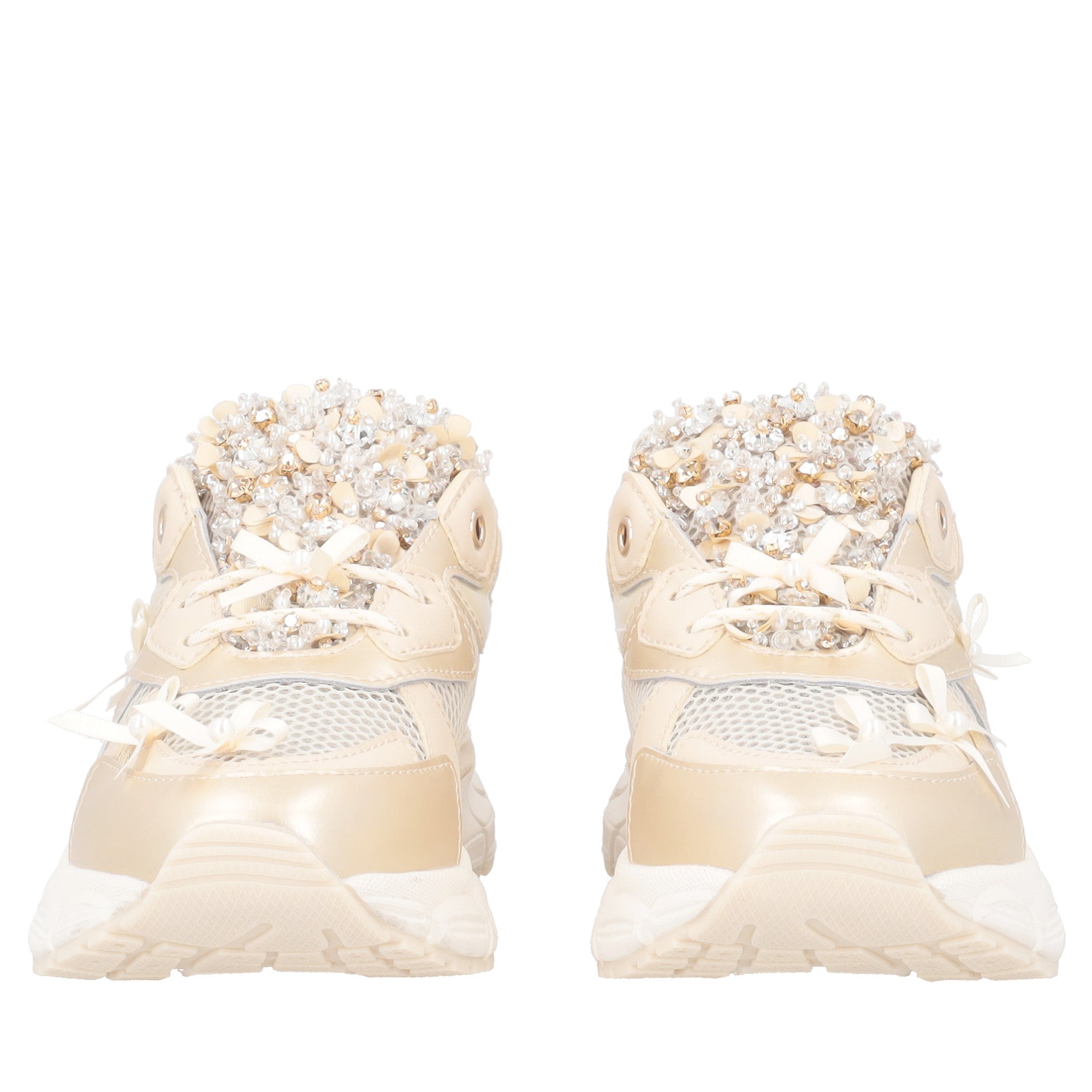 Sneaker Mirabel con micro strass, perle, fiocchi colore oro