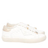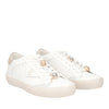 Lasciati conquistare dal fascino di queste sneakers in pelle firmate Tosca Blu. La tomaia in pelle bianca è decorata con dettagli gioiello in oro rosa e argento, che aggiungono un tocco di luminosità e originalità. Il color oro ripreso sulla suola, sul logo posizionato sul fianco e sul tallone, impreziosiscono queste sneakers in pelle, rendendole ideali per un look casual ma mai scontato.