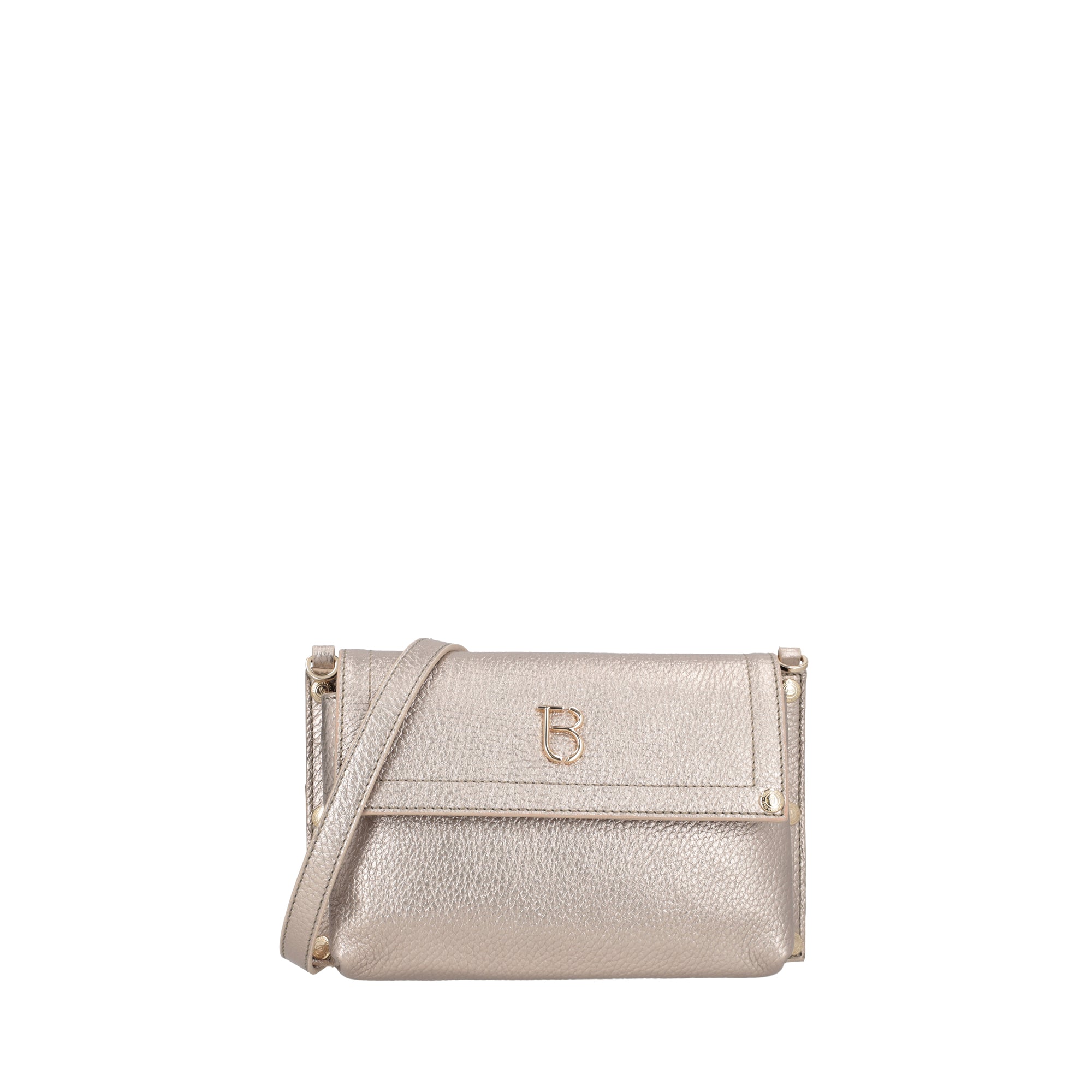Questa tracollina in pelle color oro è pensata per la donna moderna che non rinuncia all'eleganza. La pratica tracolla, removibile e regolabile, e le borchie applicate illuminano il tuo outfit, mentre la chiusura magnetica ti permette di custodire l'essenziale in un unico scomparto. Il logo Tosca Blu sulla pattina è un dettaglio raffinato: dagli appuntamenti eleganti a quelli più informali, scegli la tracollina in pelle che si adatta a ogni occasione.