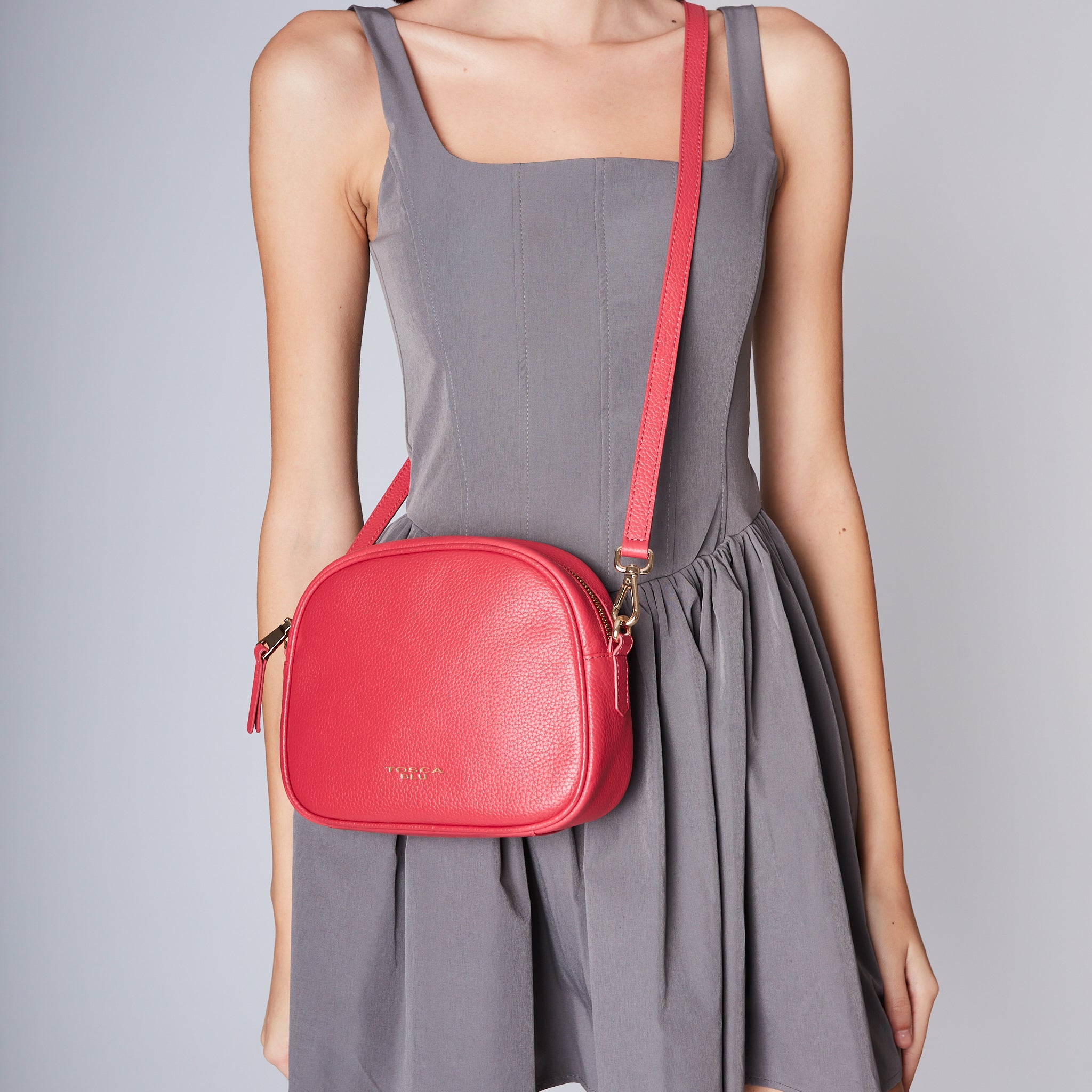 Tosca Blu firma questa tracollina in pelle di tendenza declinata in color corallo con chiusura zippata. Con il logo stampato sulla parte frontale, internamente è dotata di uno scomparto foderato che presenta una tasca con zip e una tasca portaoggetti. Indossa questa tracollina in pelle crossbody grazie alla tracolla regolabile e removibile che la rende un accessorio da sfoggiare a più non posso.