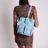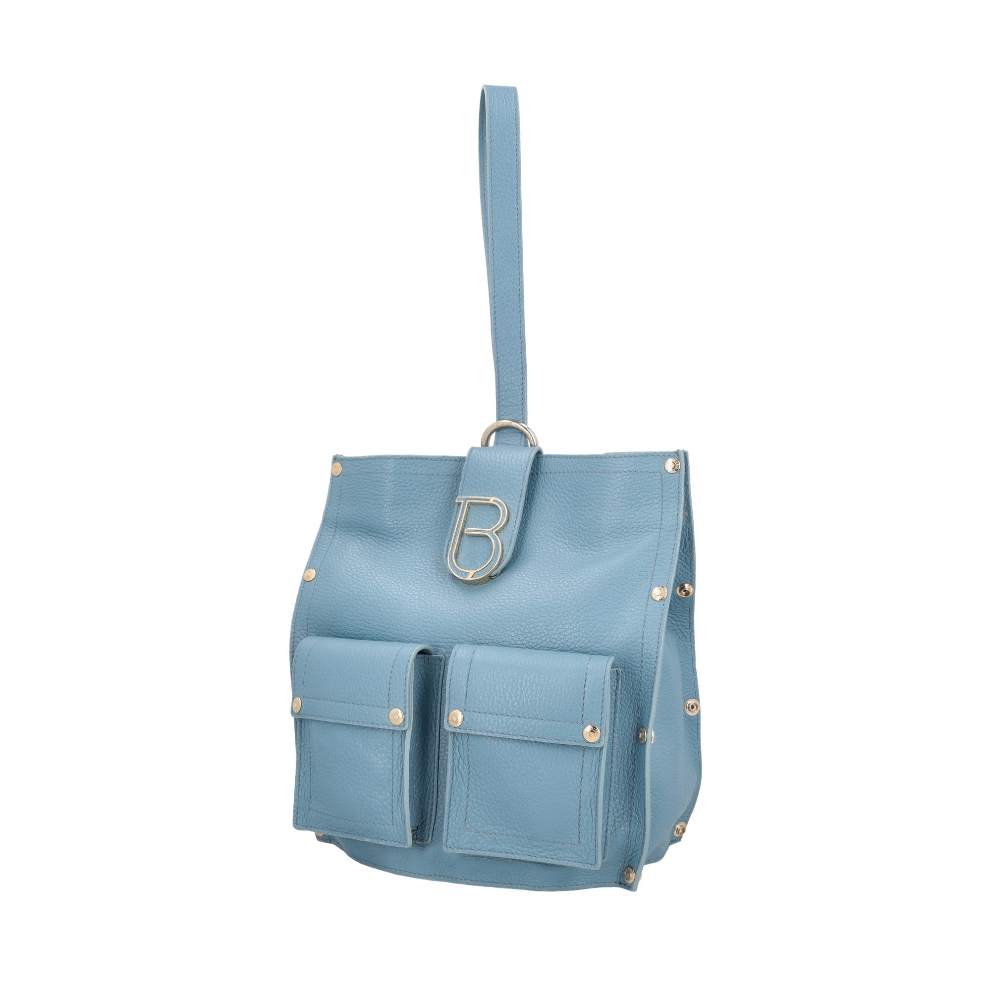 Scopri il perfetto equilibrio tra stile e funzionalità con lo zaino monospalla in morbida pelle di colore azzurro firmato Tosca Blu. Impreziosito da borchie, presenta un unico scomparto principale con chiusura a bottone, due tasche frontali e monogramma applicato. Indossa questo zaino monospalla con un look total denim per un tocco urban-chic, oppure abbinalo a un abito per un'eleganza senza tempo che non rinuncia alla praticità.
